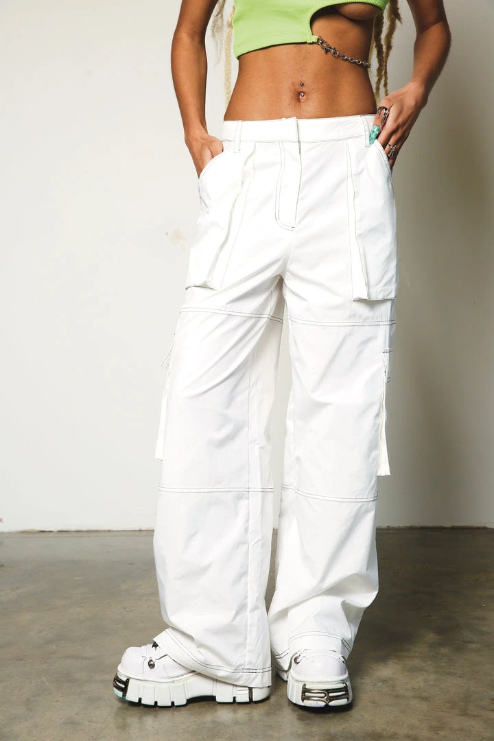 The Ragged Priest white baggy wide leg combat trouser with leg panels