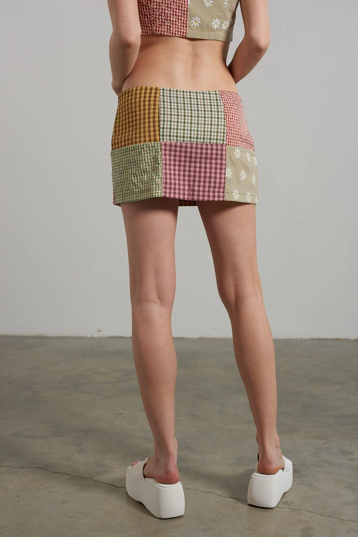 The Ragged Priest multi coloured mixed patchwork super mini skirt.