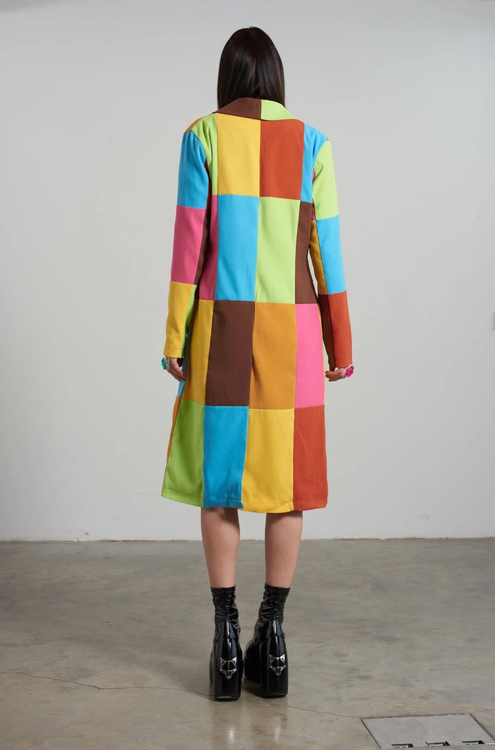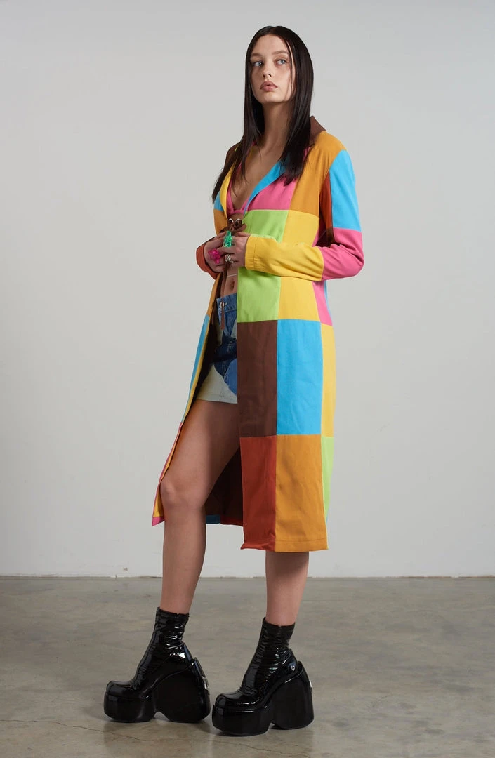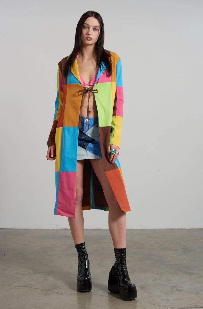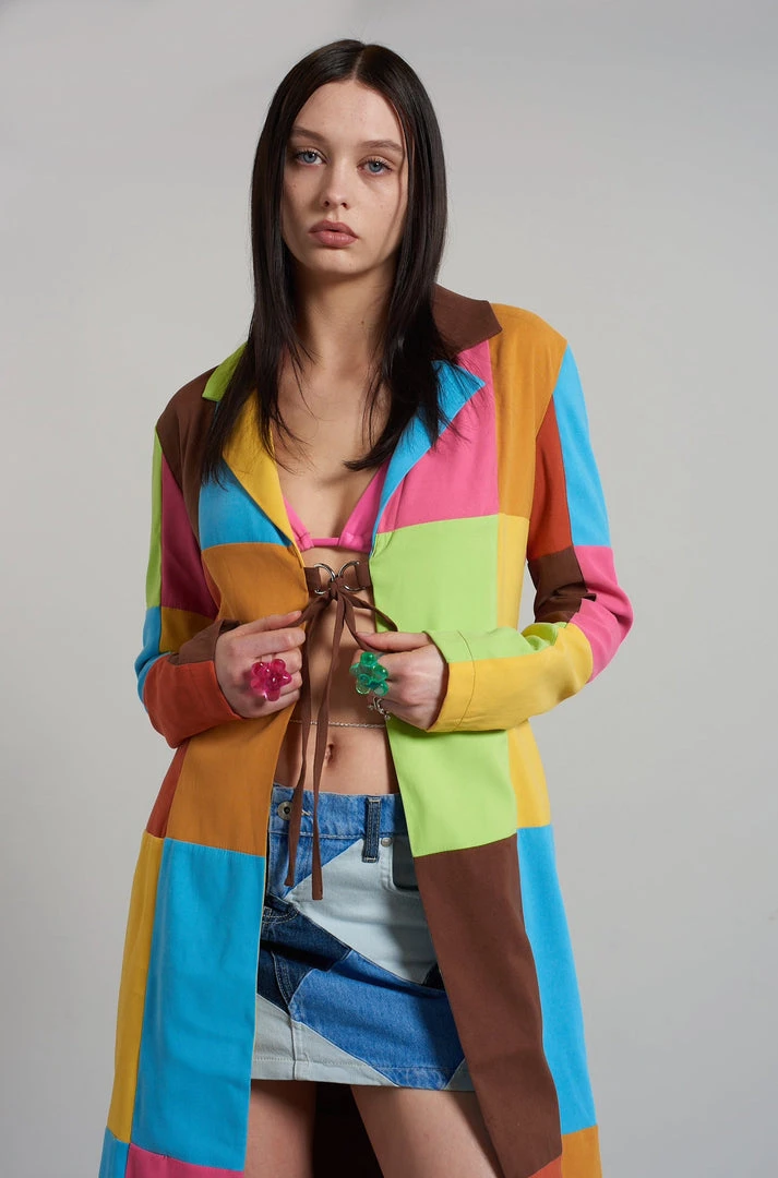 The Ragged Priest multi colour panelled longline jacket with d-ring and tie up front.