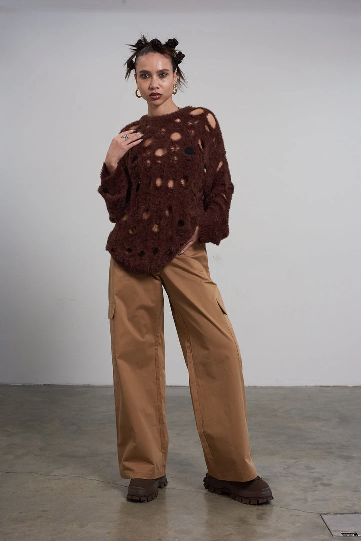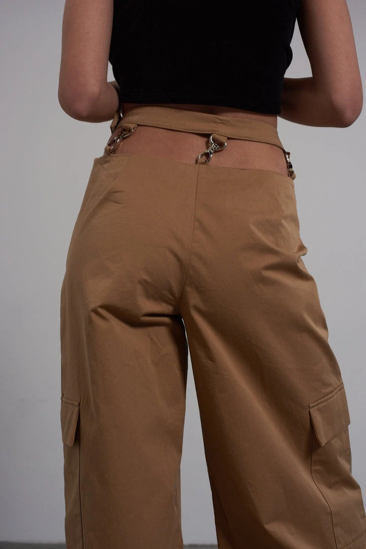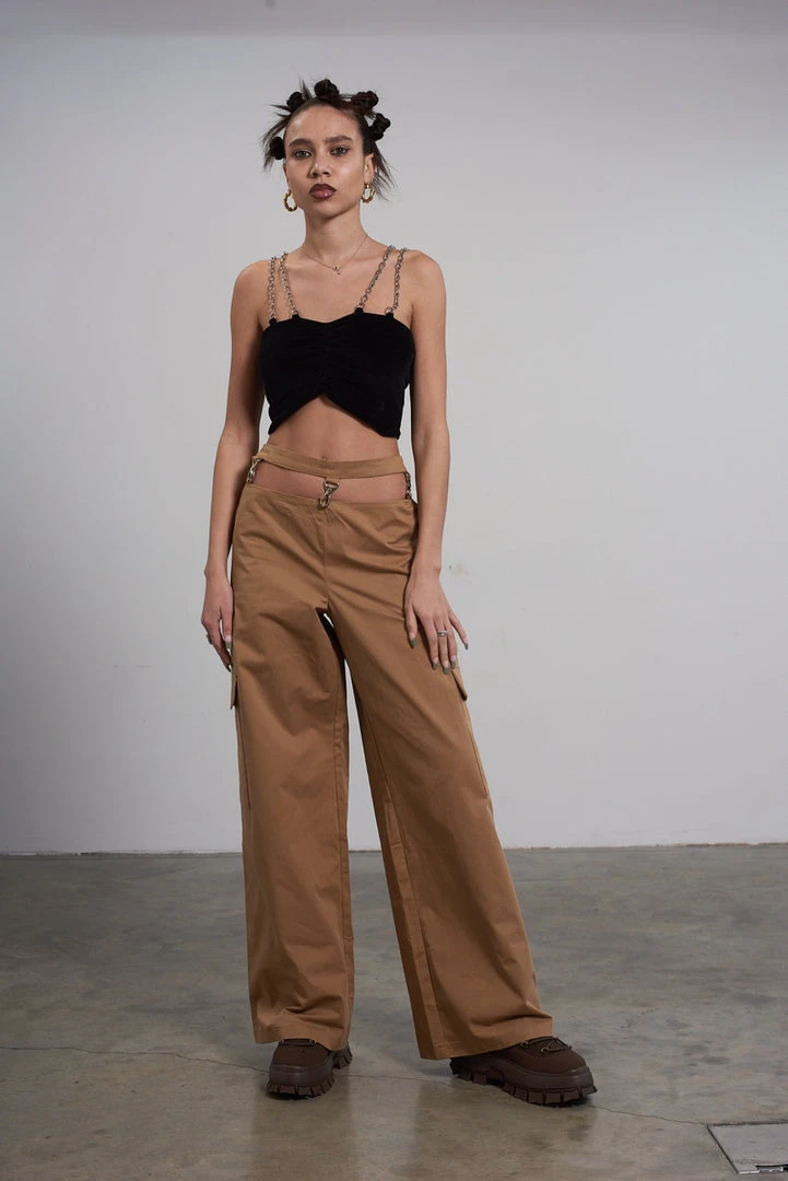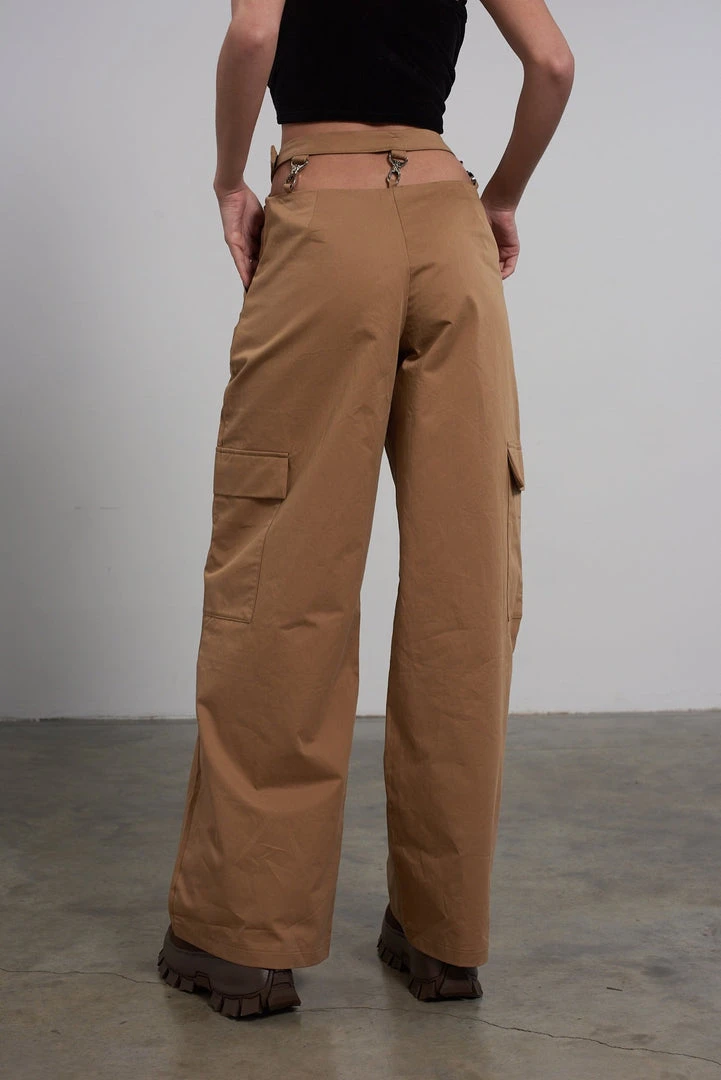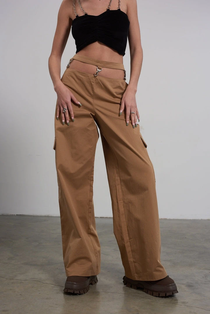 The Ragged Priest brown super baggy wide leg pant with trigger and d-ring separated waistband.