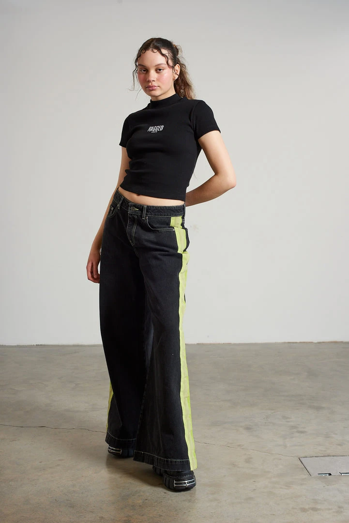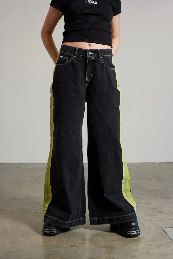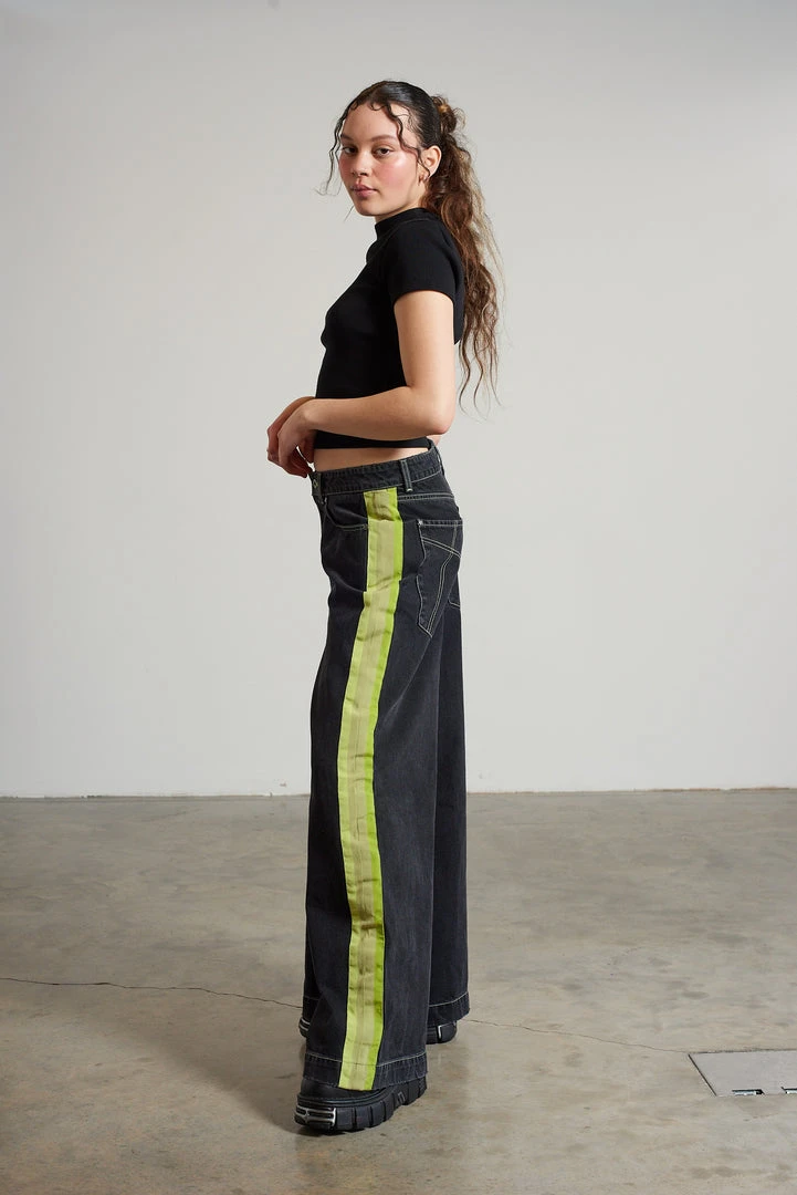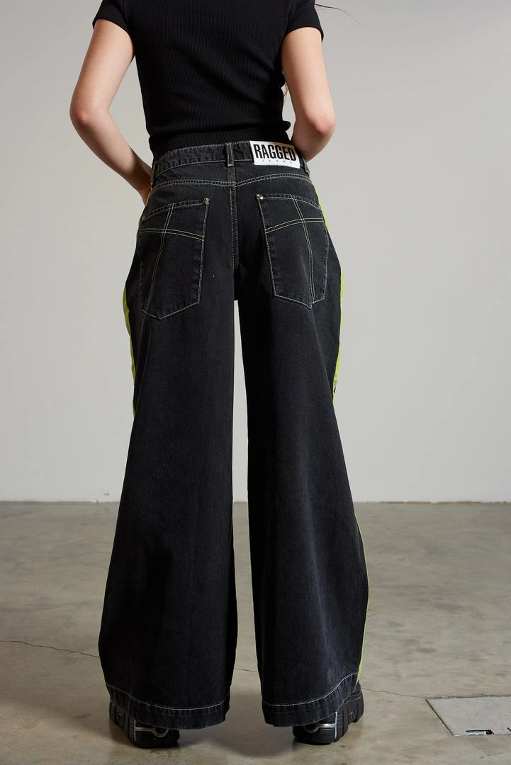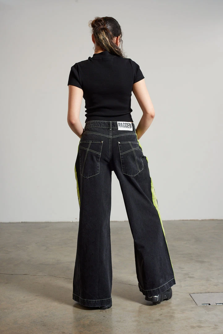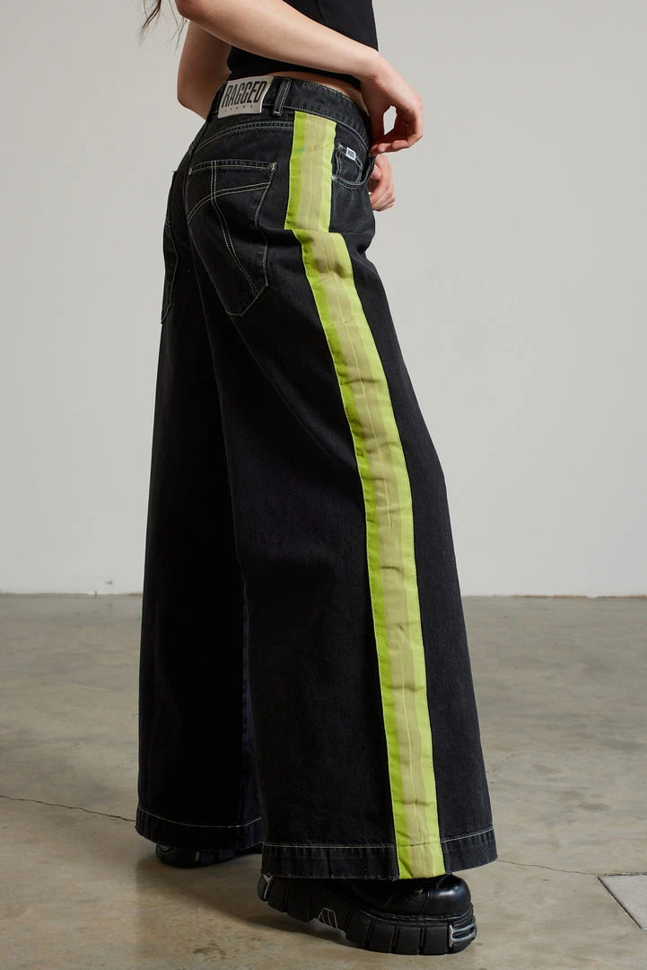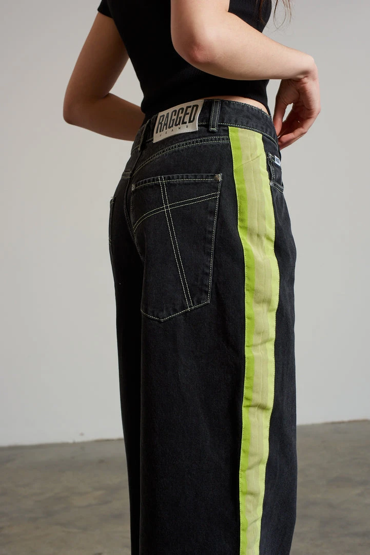 Ragged Jeans charcoal wide leg denim skater jean with side seam stripe.