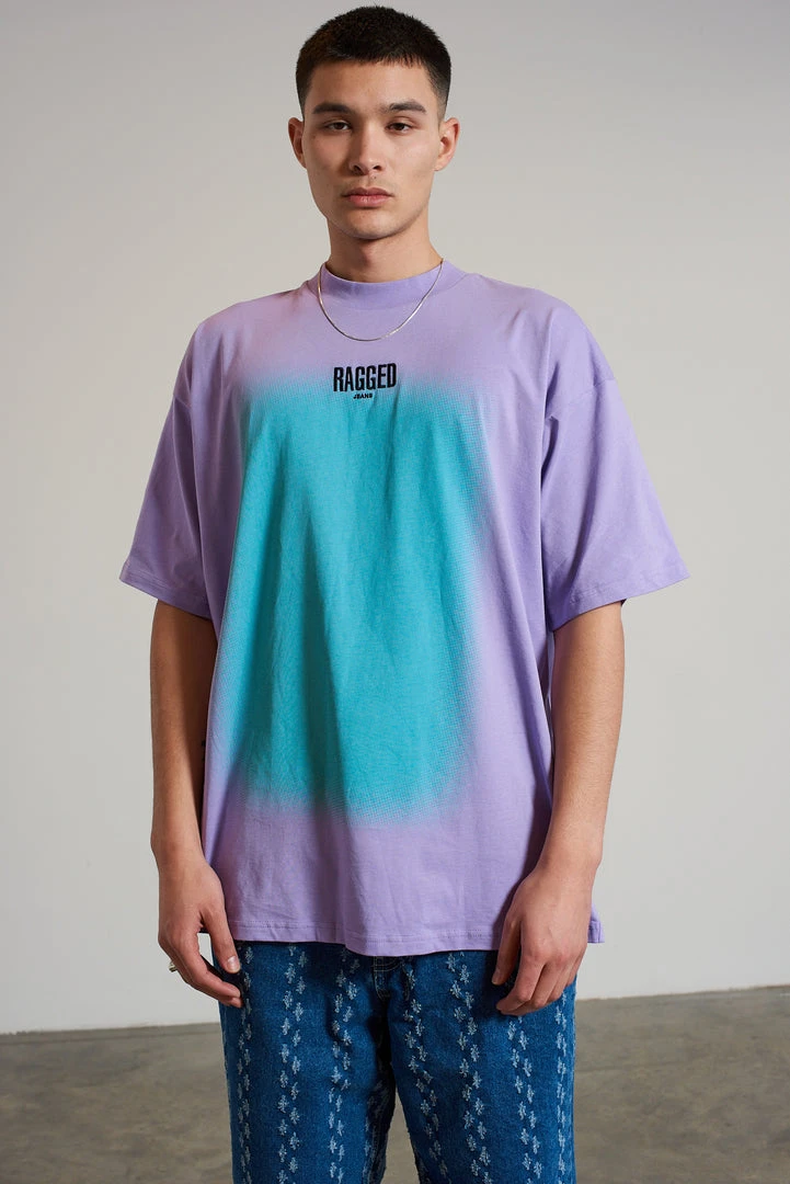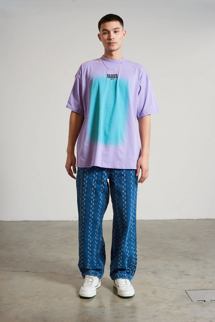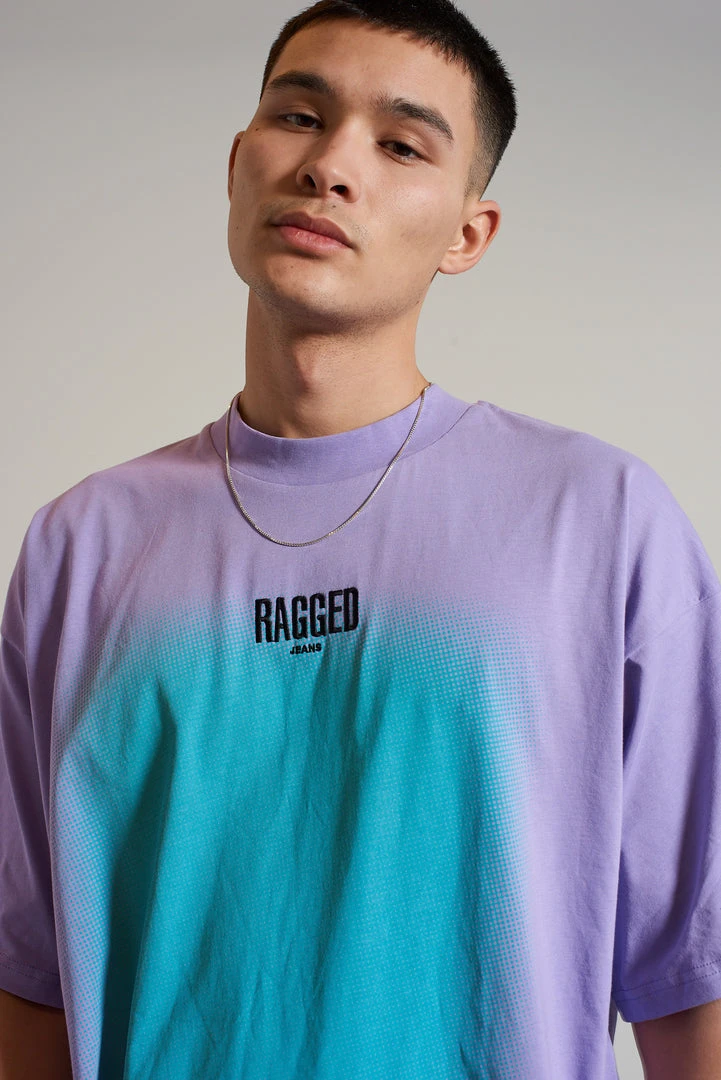 Ragged Jeans mens purple and blue burn out print short sleeve tee with embroidered Ragged logo.