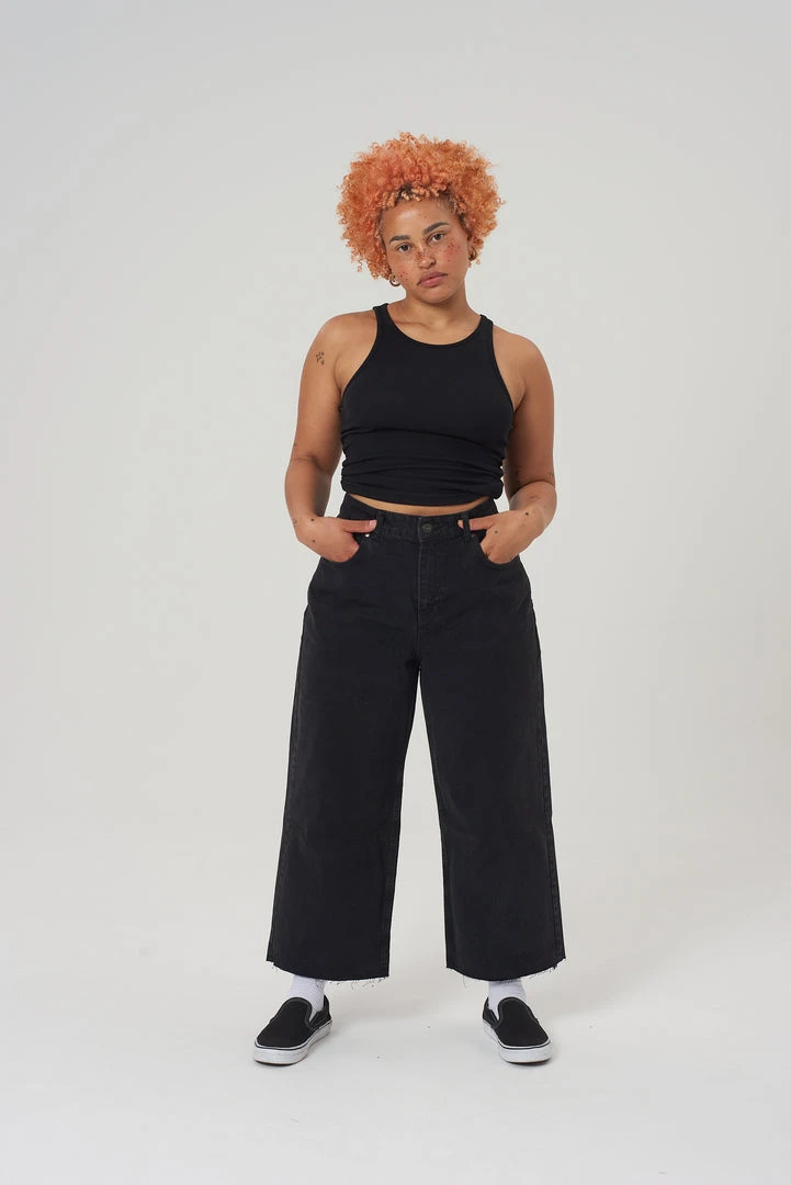 Ragged Jeans Grip cropped skater Jean in charcoal. Complete with “RAGGED JEANS” back belt loop tab.