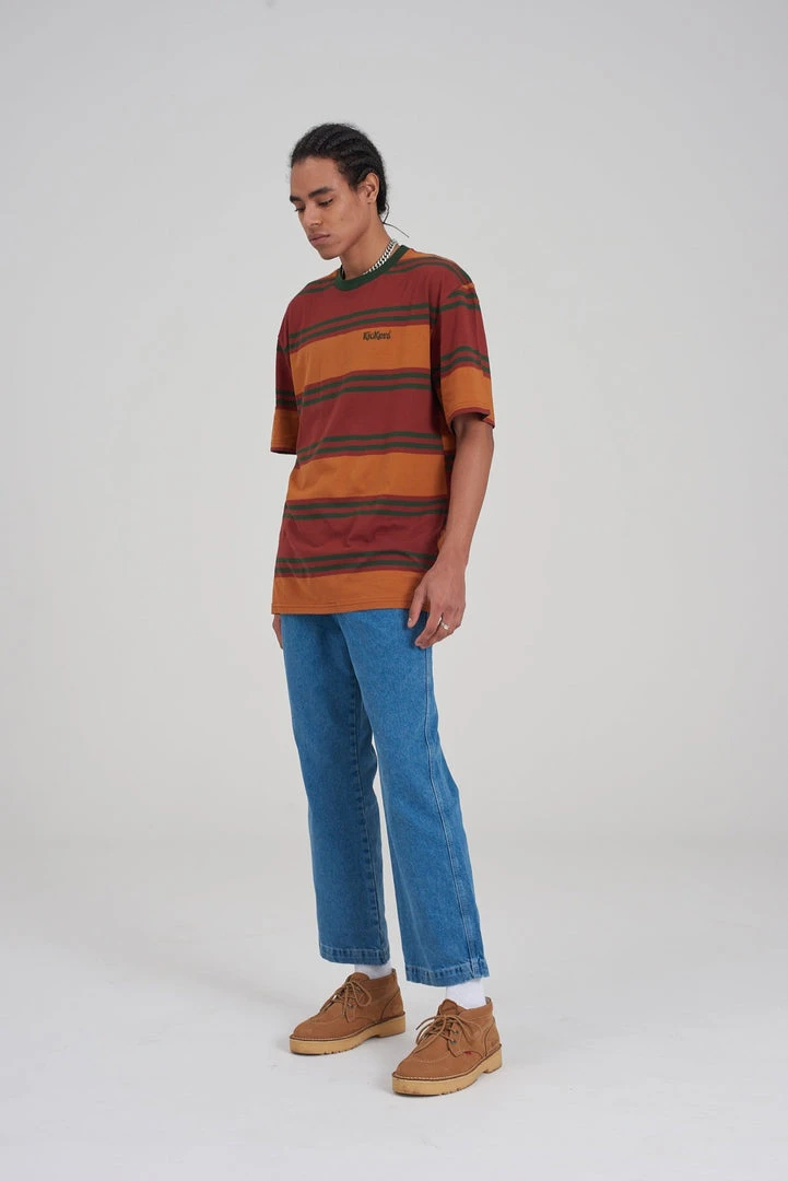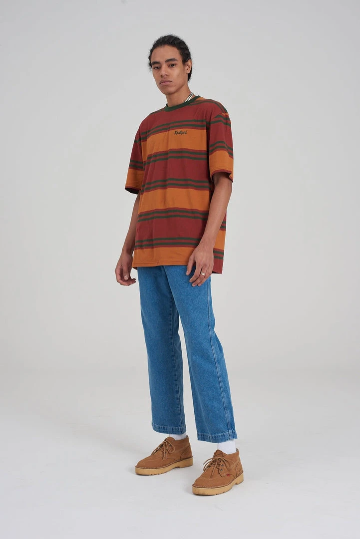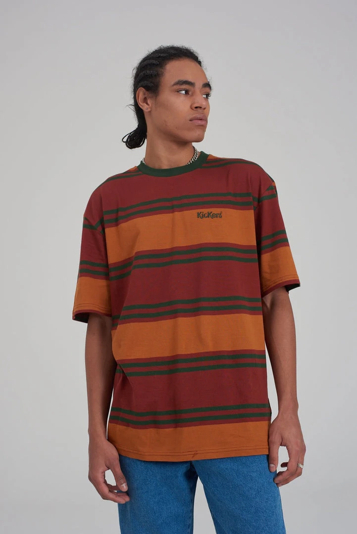 Kickers Classics brown & tan stripe short sleeve tee.