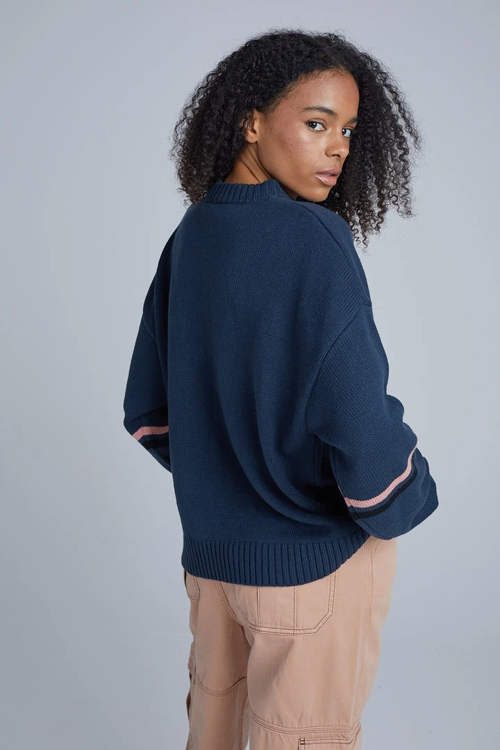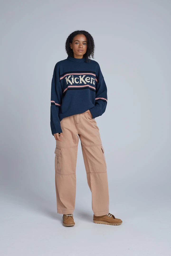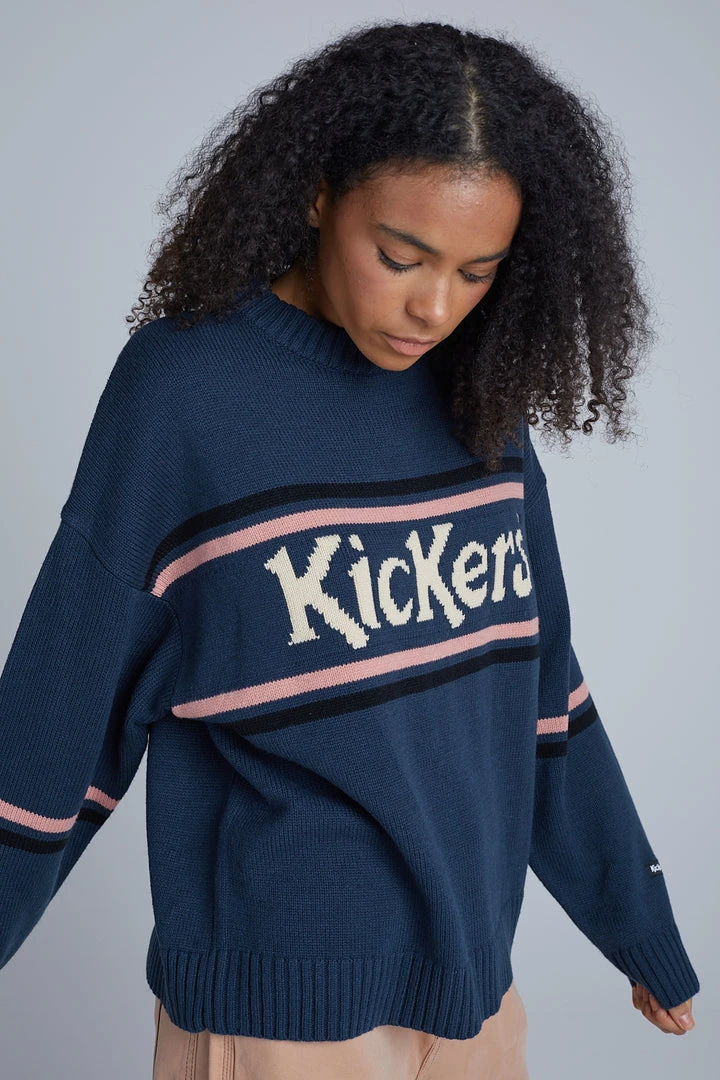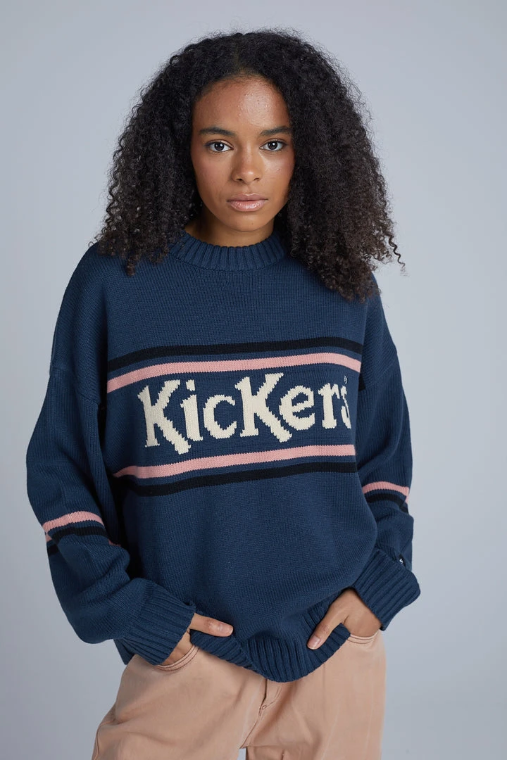 Kickers Classics dark blue knitted jumper with chest panel logo.