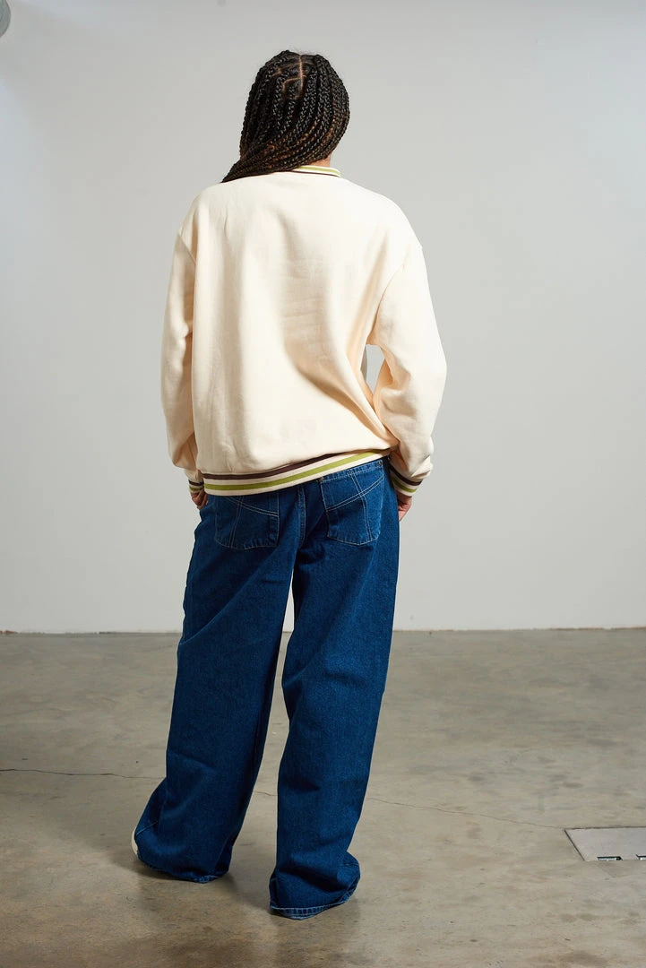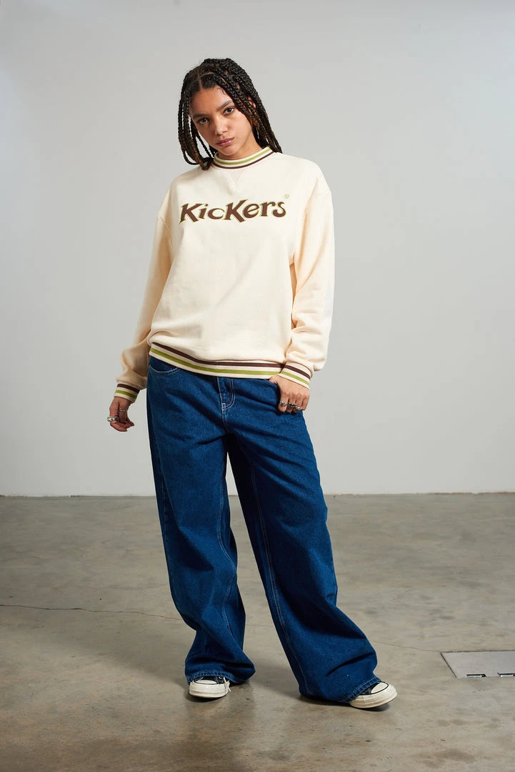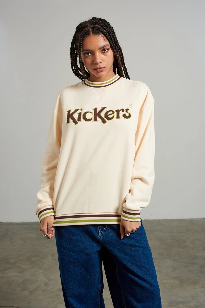 Kickers Classics ecru sweatshirt with central Kickers logo and stripe trims.