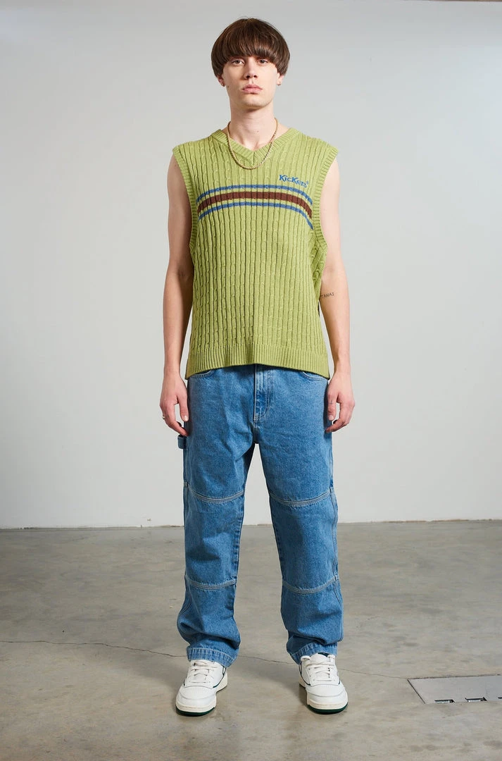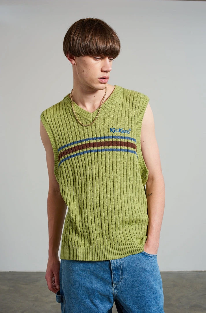 The Ragged Priest Kickers Classics Green Cable Knit Vest