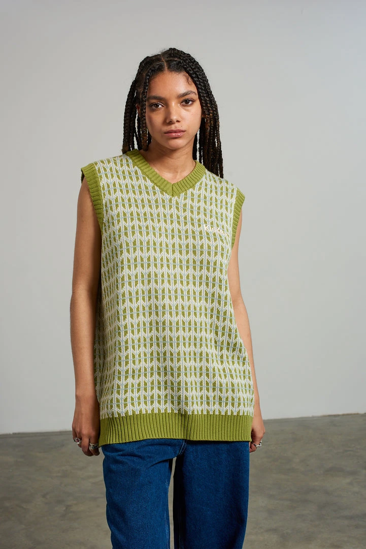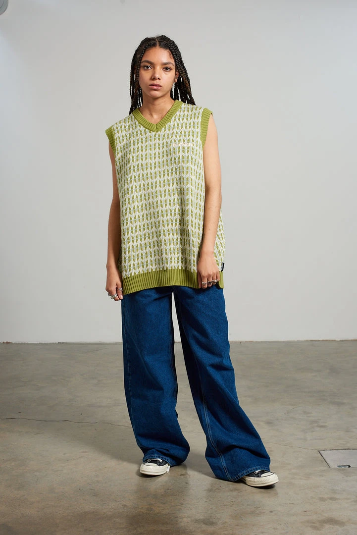 The Ragged Priest Kickers Classics Green Print Knit Vest