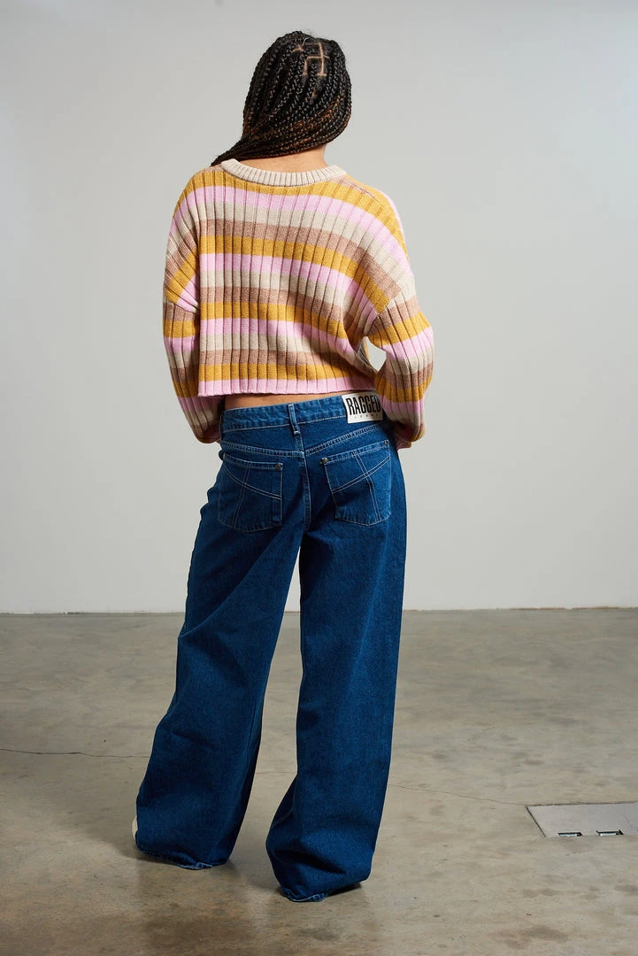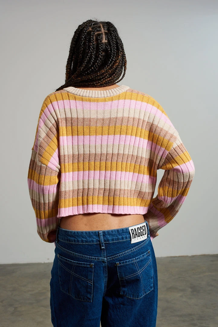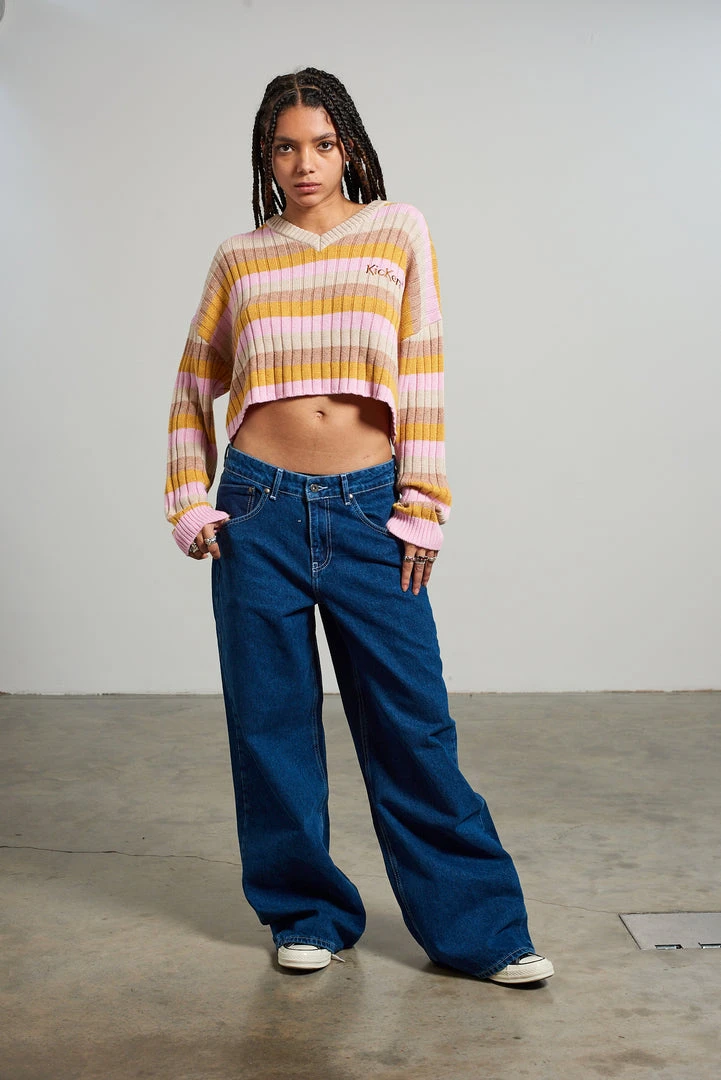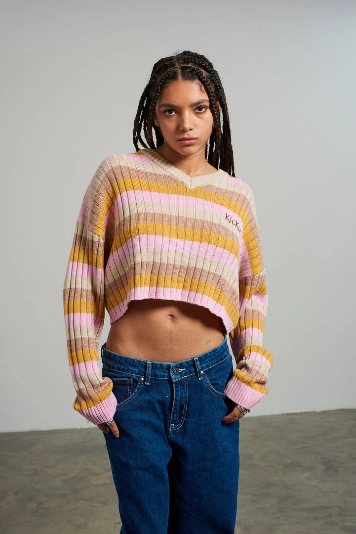 Kickers Classics multi colour stripe cropped v-neck knit.