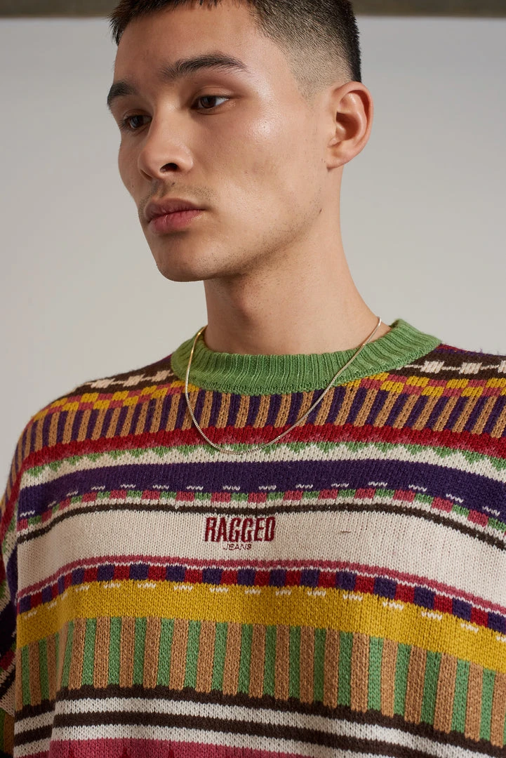 Ragged Jeans mens multicolour sweater shop print long sleeve knit jumper.