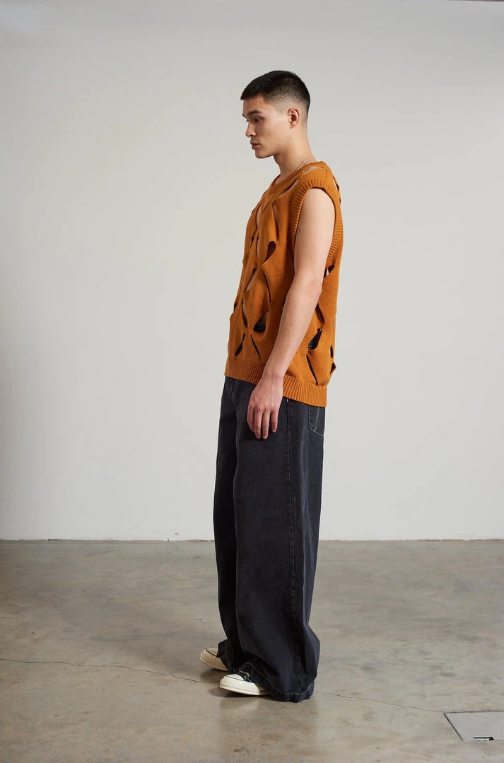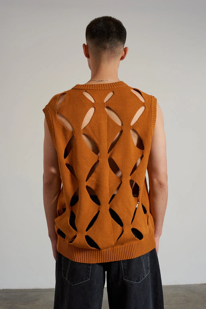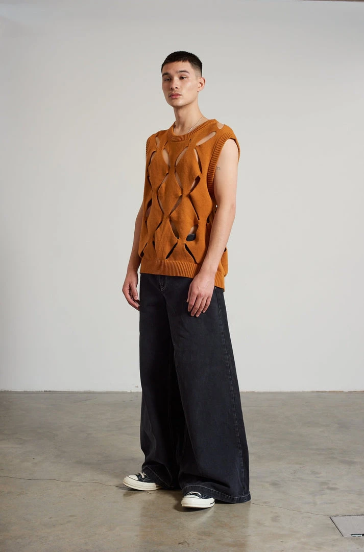 Ragged Jeans mens cut out knit vest.