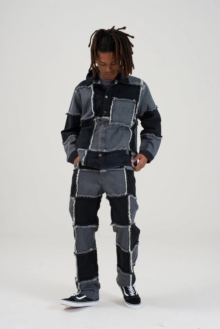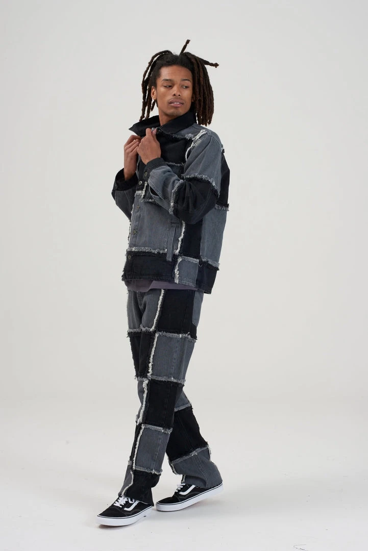 Ragged Jeans mens charcoal patchwork denim jacket.