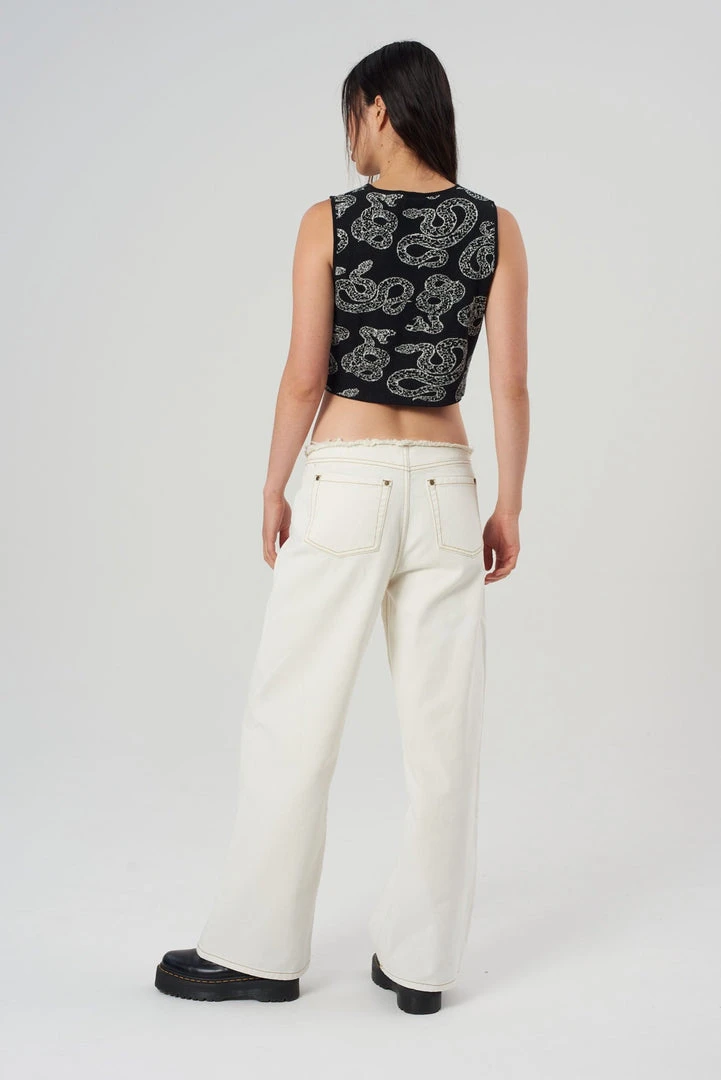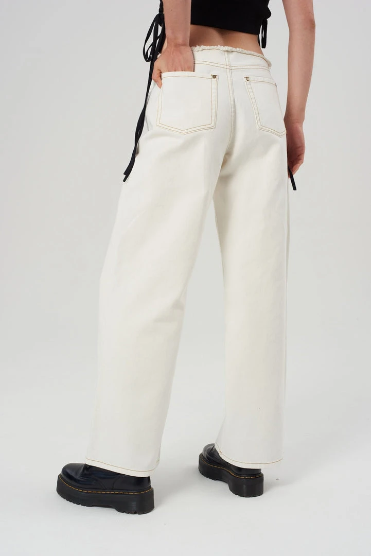 The Pure Jeans are our ecru denim low rise jeans with gold stitching detail.Â