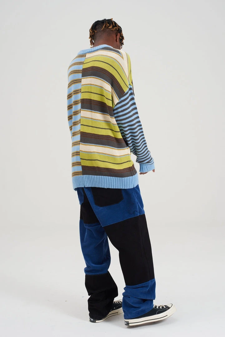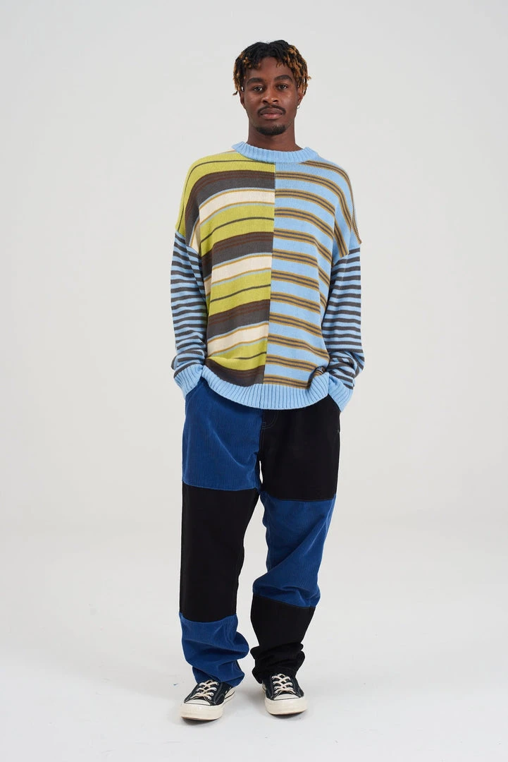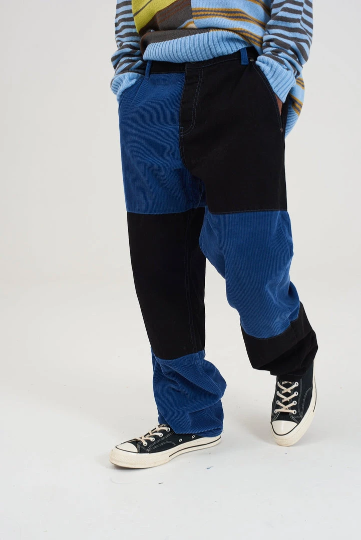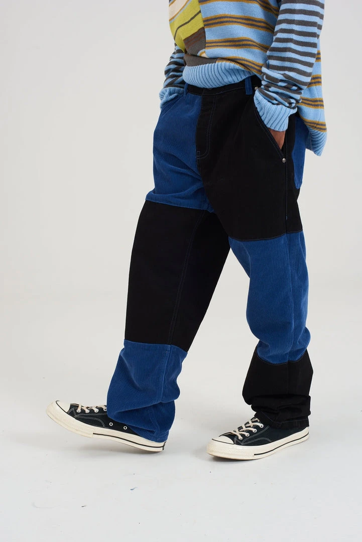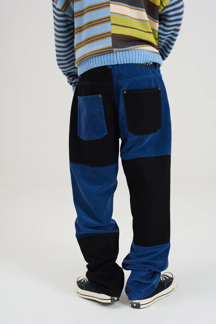 Ragged Jeans mens charcoal and blue mixed cord and denim jeans.