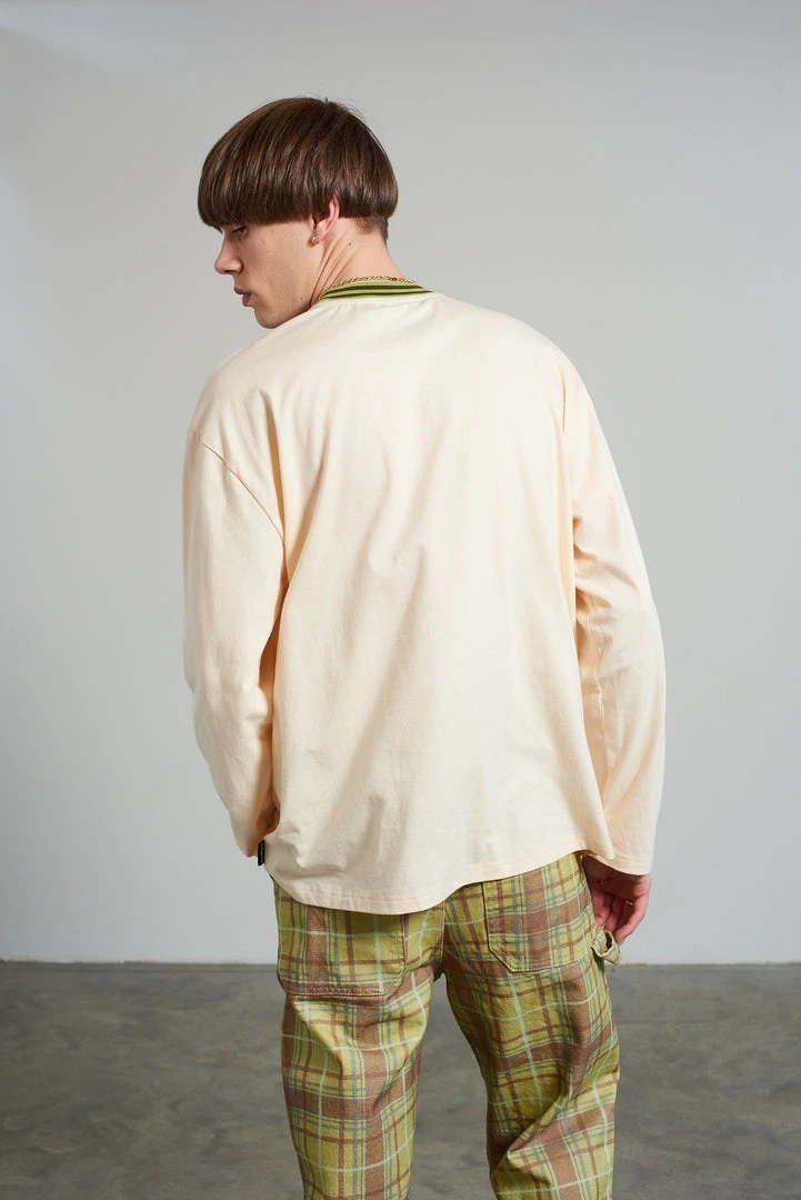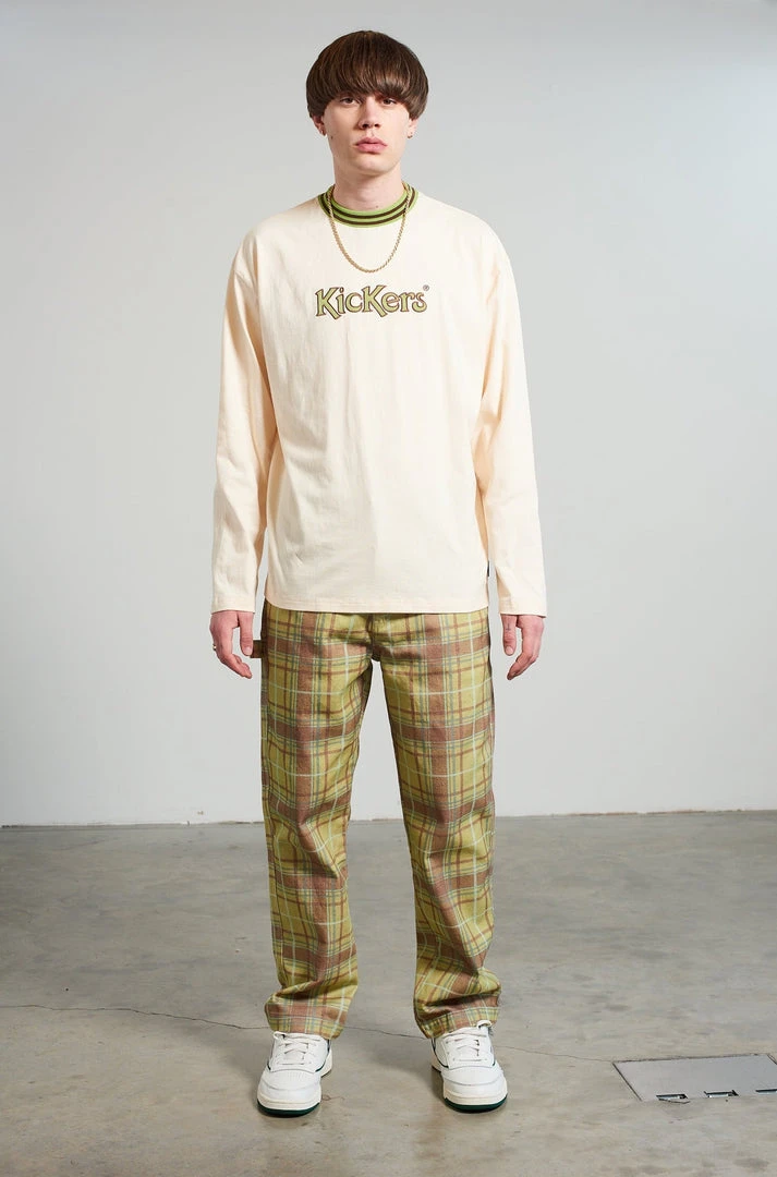 Kickers Classics ecru long sleeve tee with chest logo and stripe trims.
