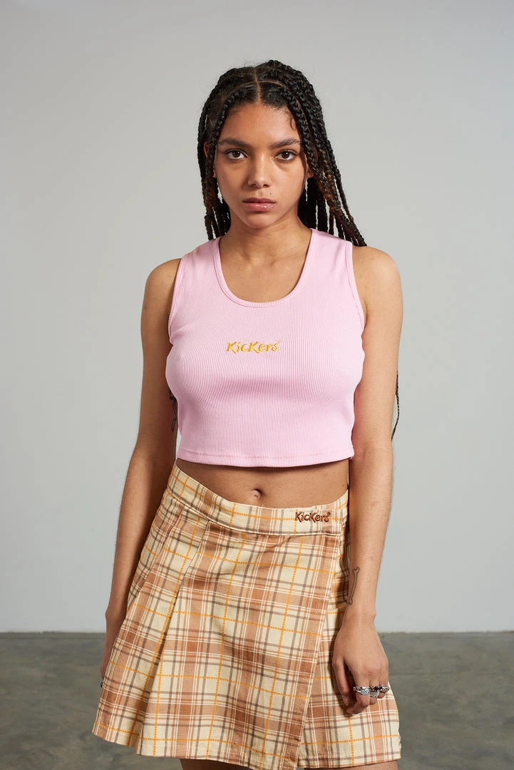 Kickers Classics pink rib vest with embroidered Kickers logo.