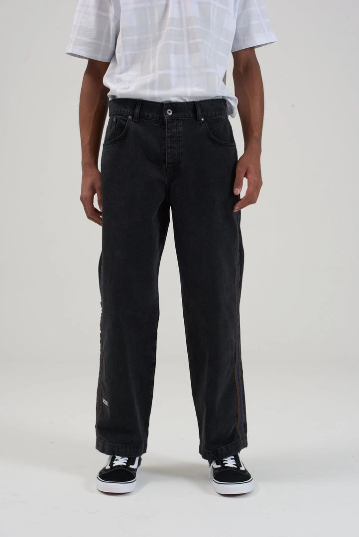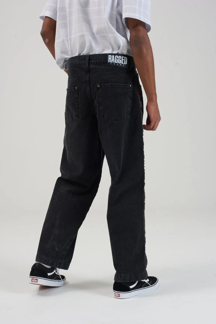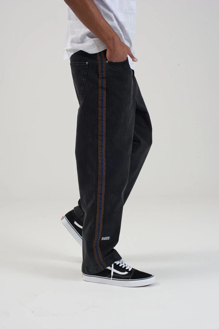Ragged Jeans mens charcoal denim jeans with side stripe.