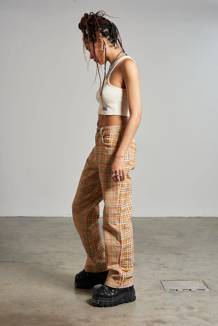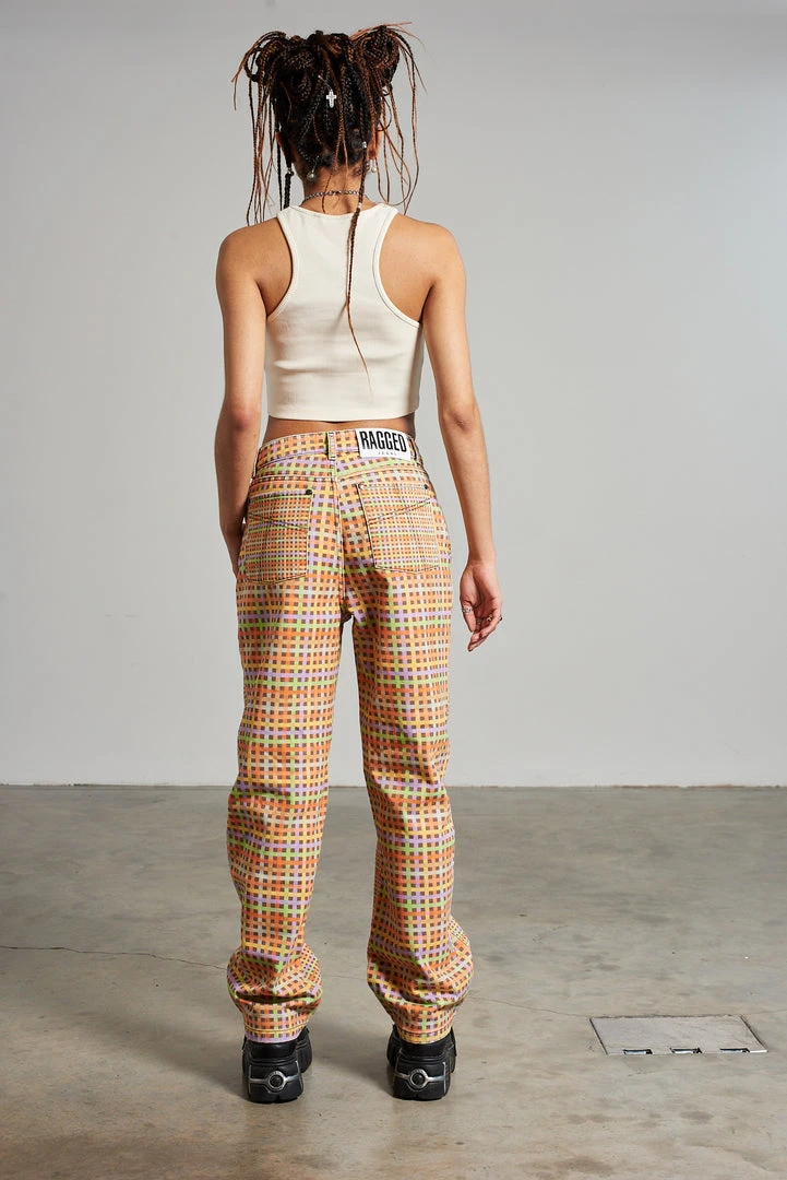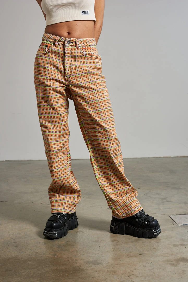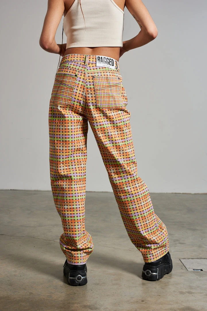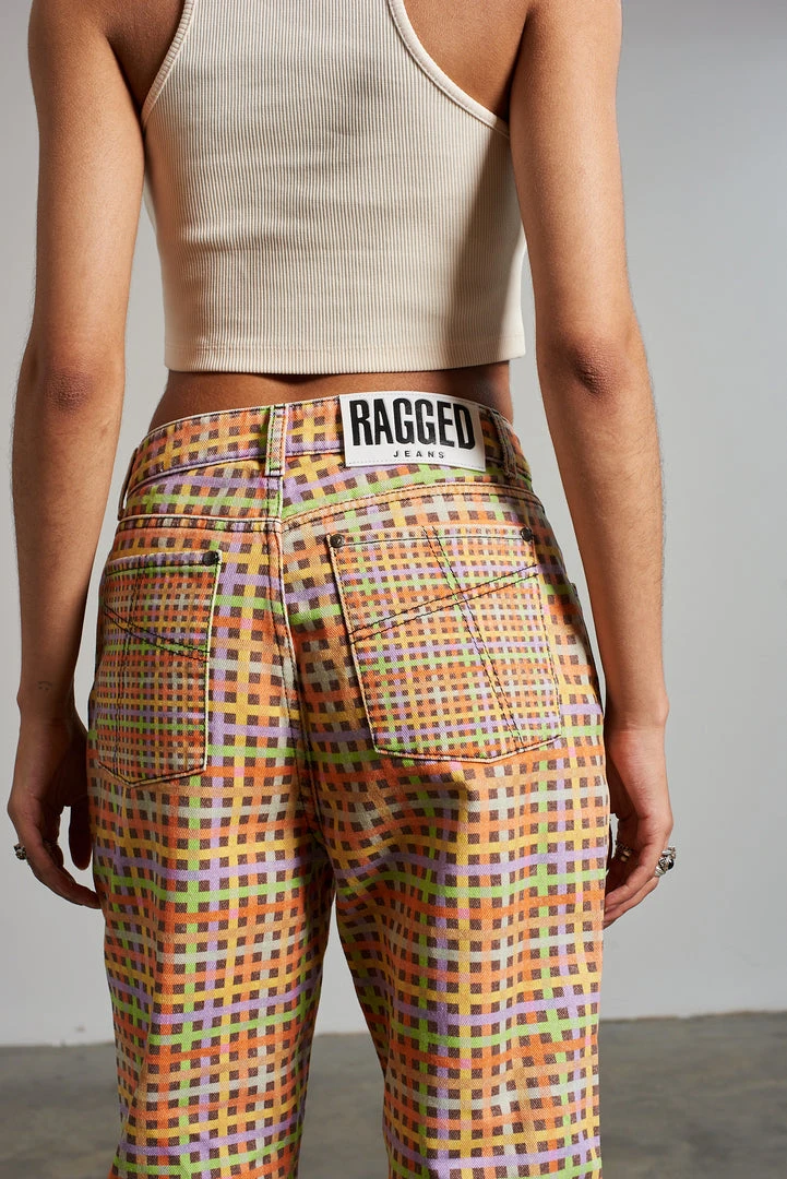 Ragged Jeans multi colour mini check printed denim dad jean.