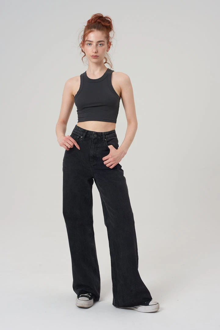 The Ragged Priest signature Trip fit in our charcoal wash organic denim with classic “Ragged Jeans” belt loop back tab.