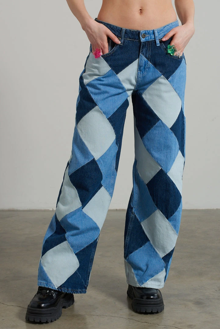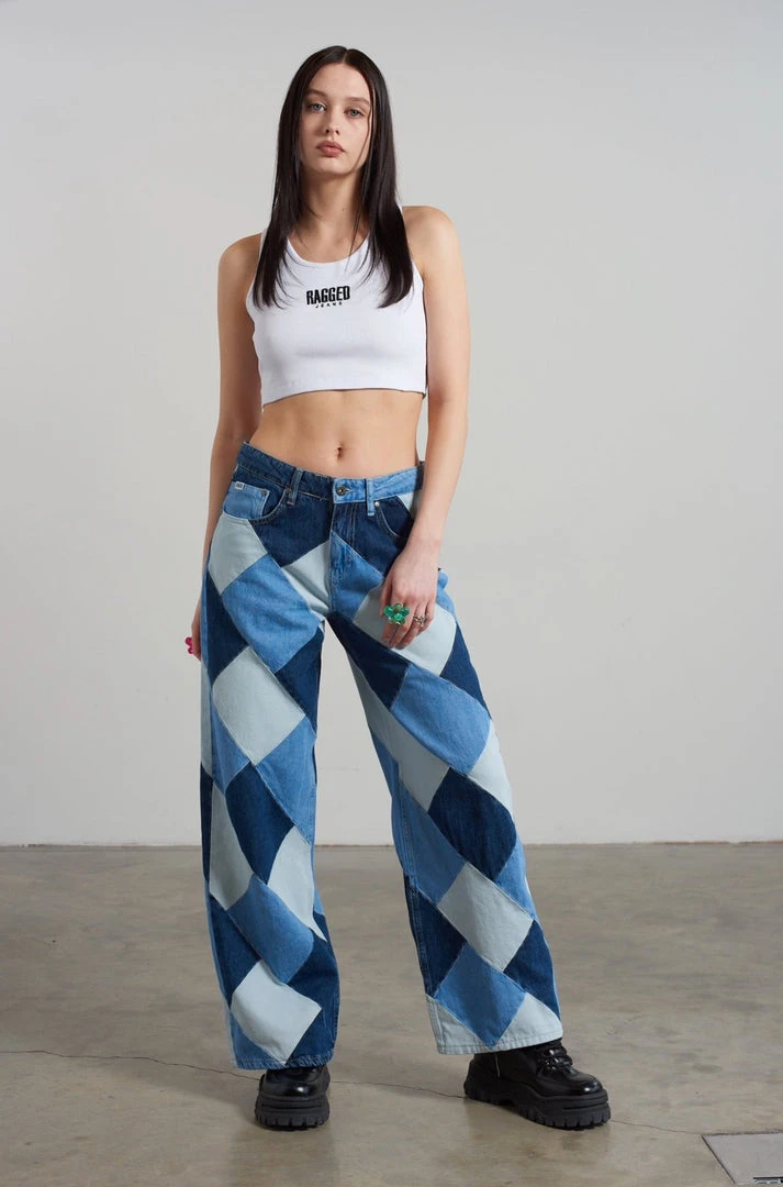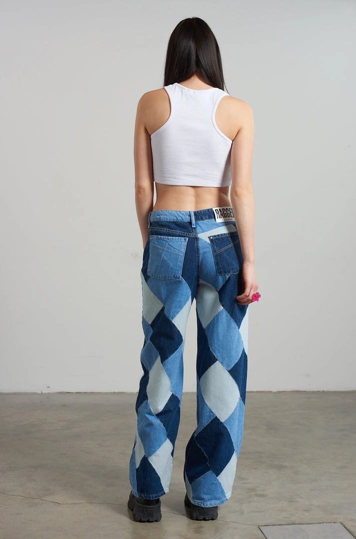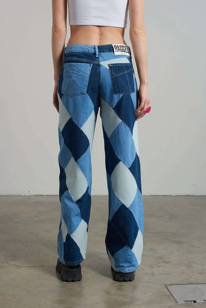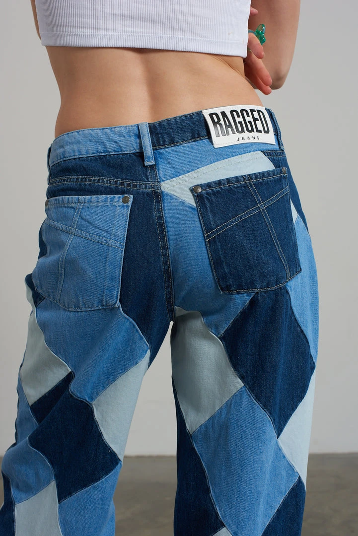 Ragged Jeans blue panel patchwork baggy low rise denim jean