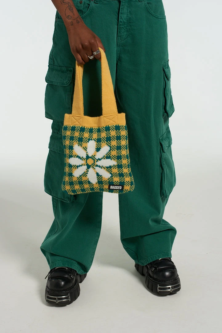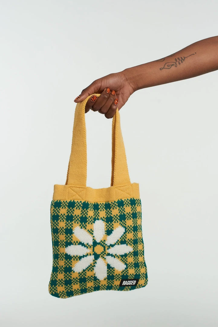 The Ragged Priest knitted gingham design grab bag with centra large daisy design.Â
