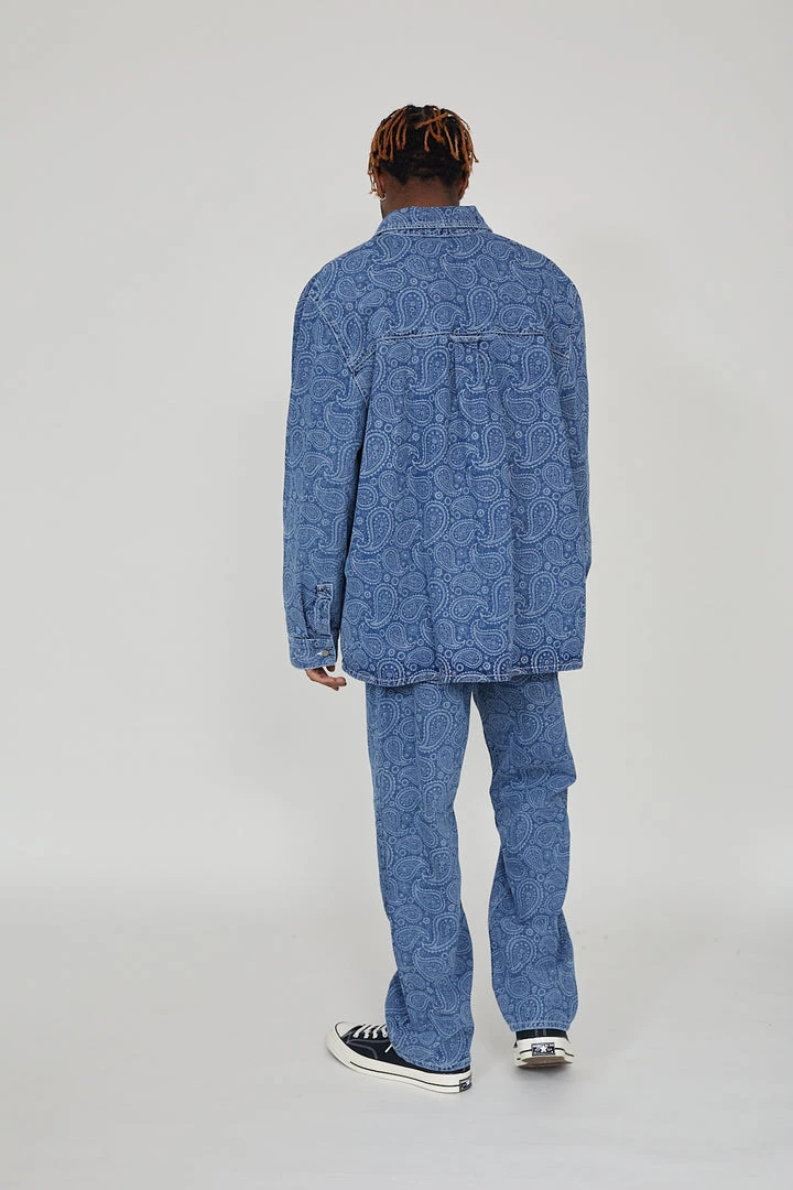 Ragged Jeans mens paisley laser cut mid wash denim jeans.