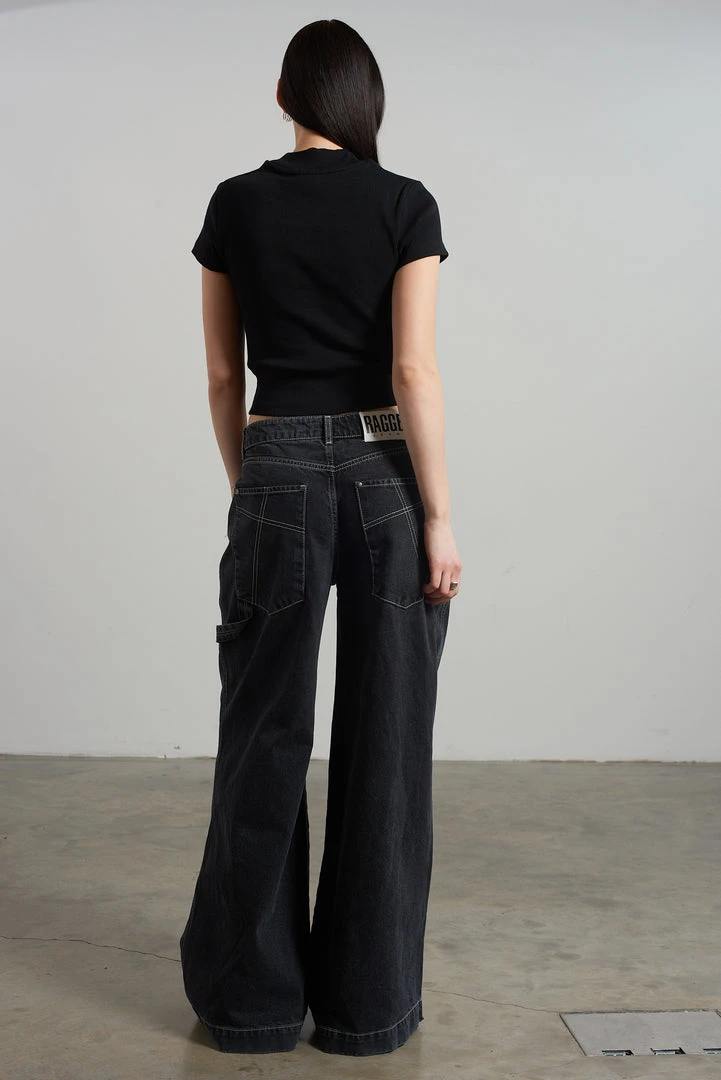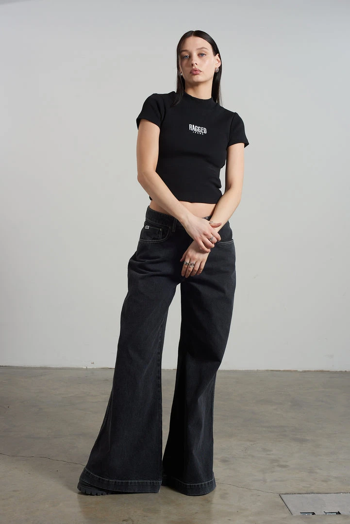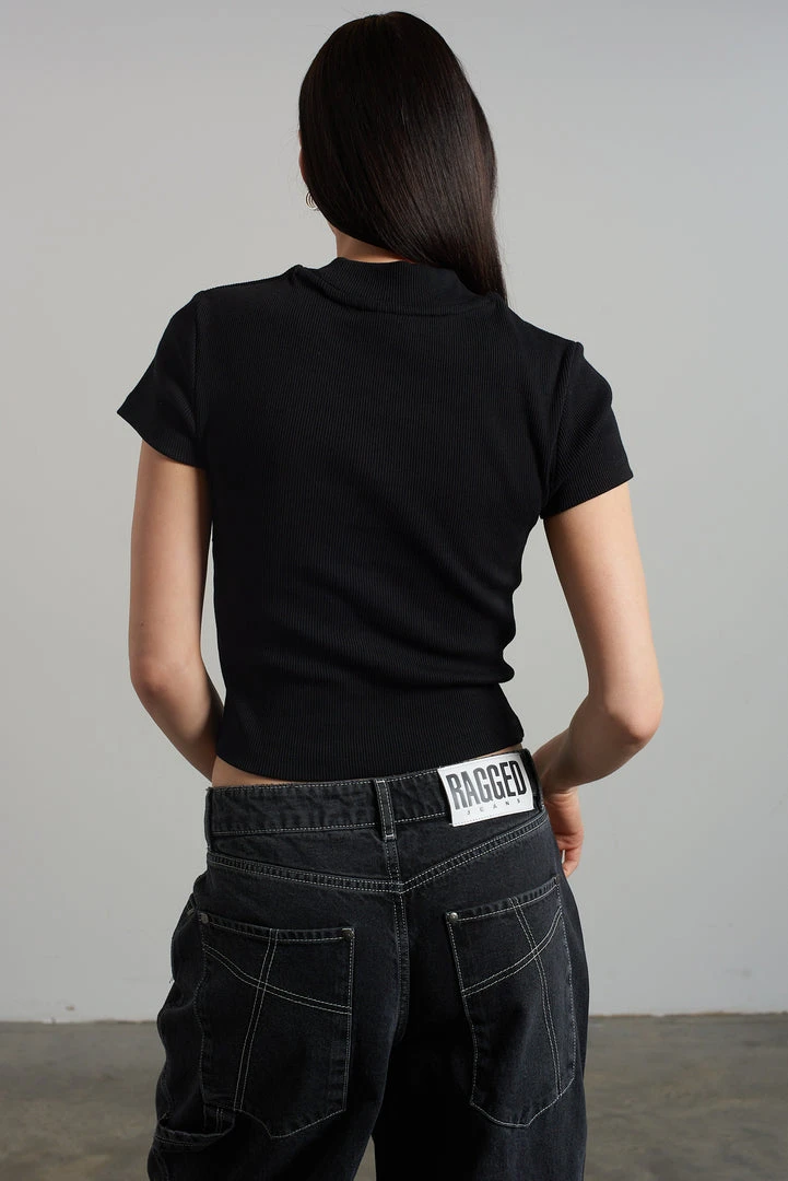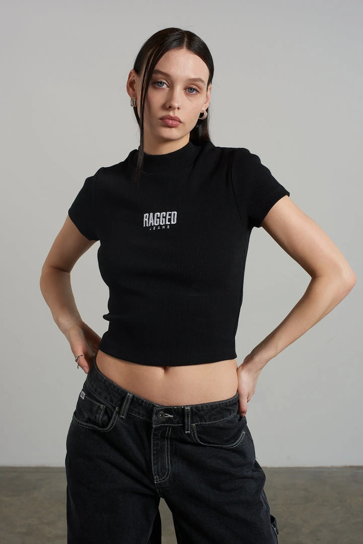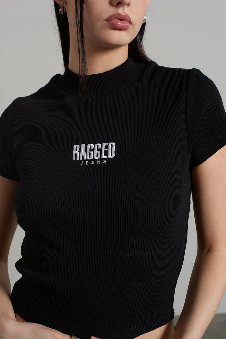 Ragged Jeans black ribbed short sleeve tee with embroidered logo.