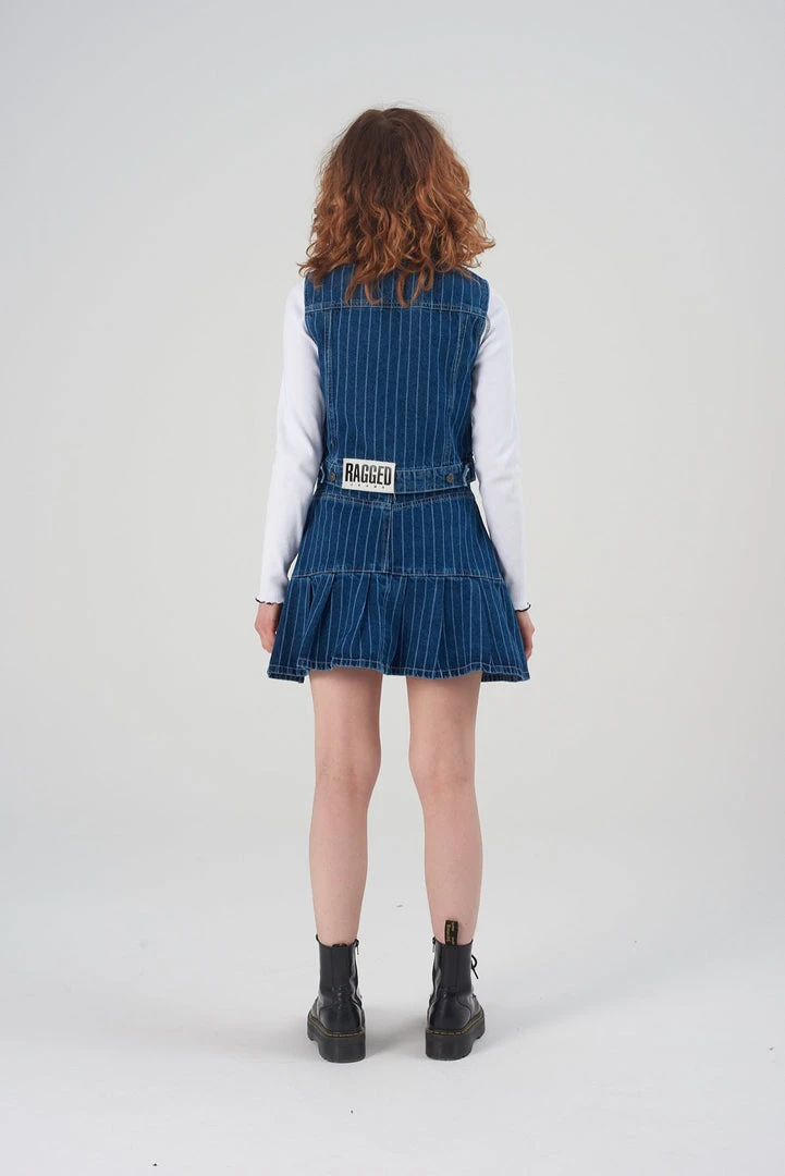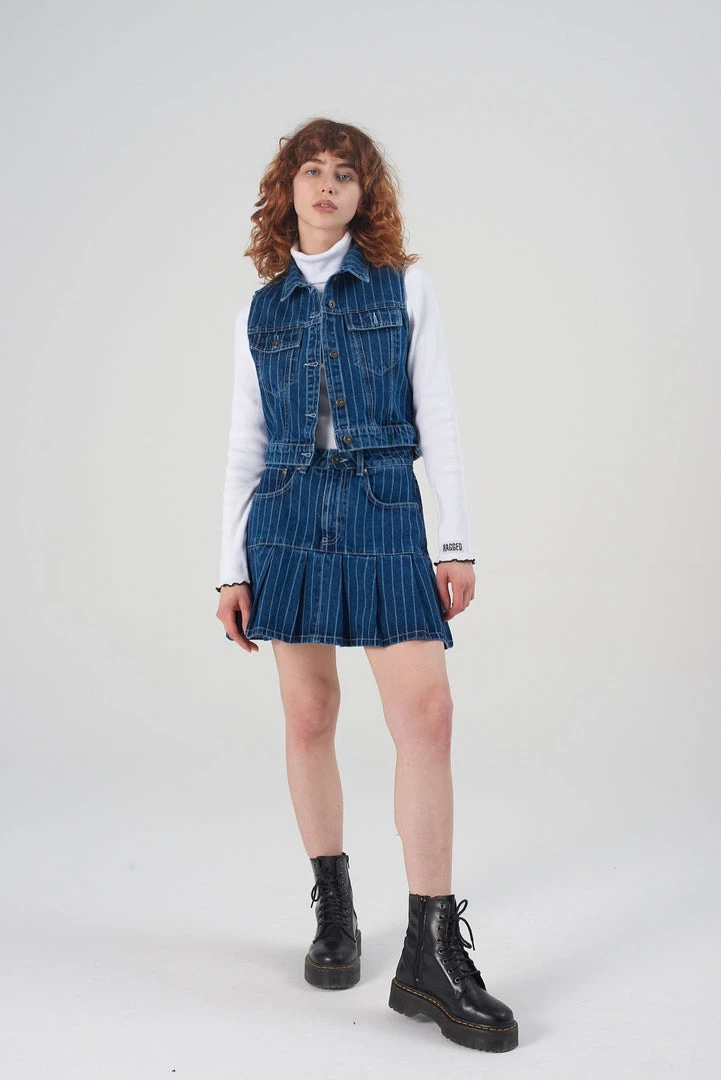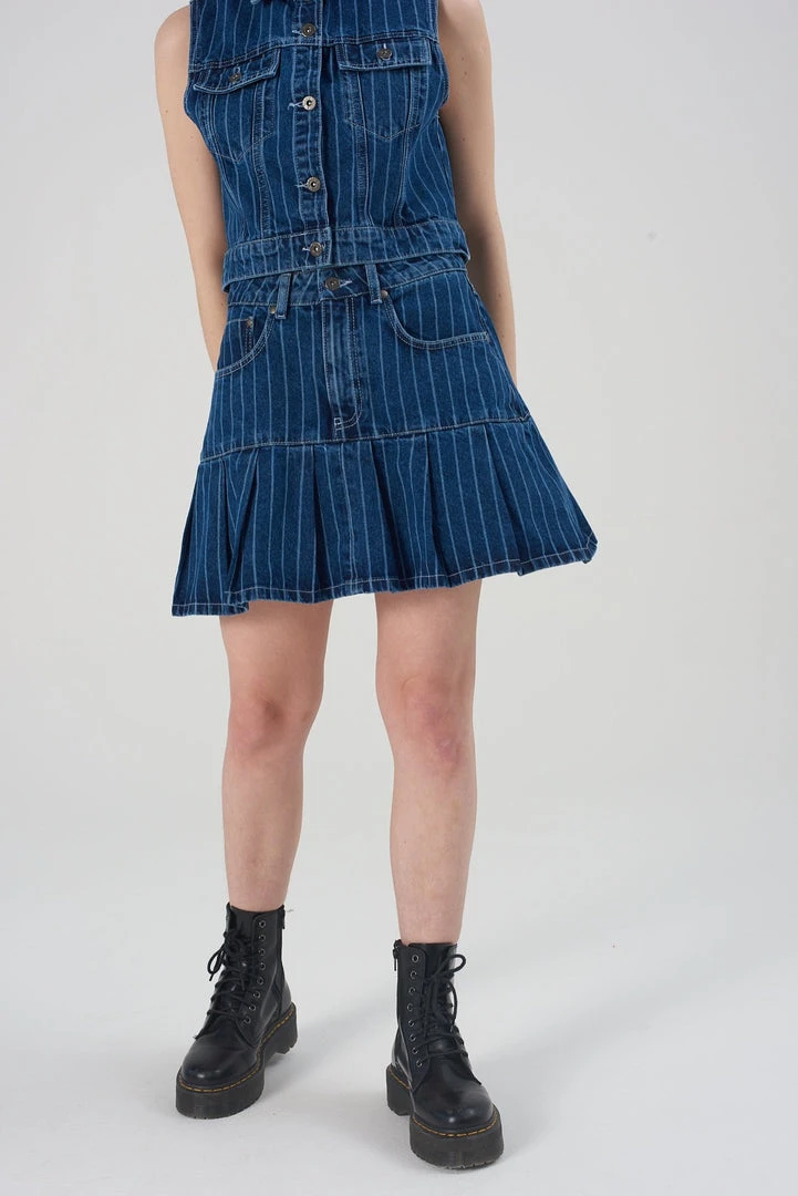 Ragged Jeans blue pinstripe pleated denim mini skirt.