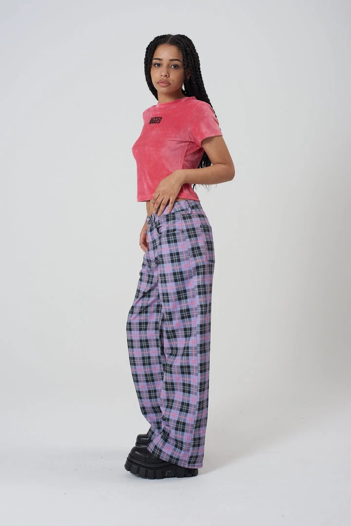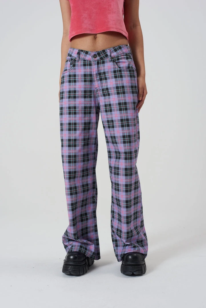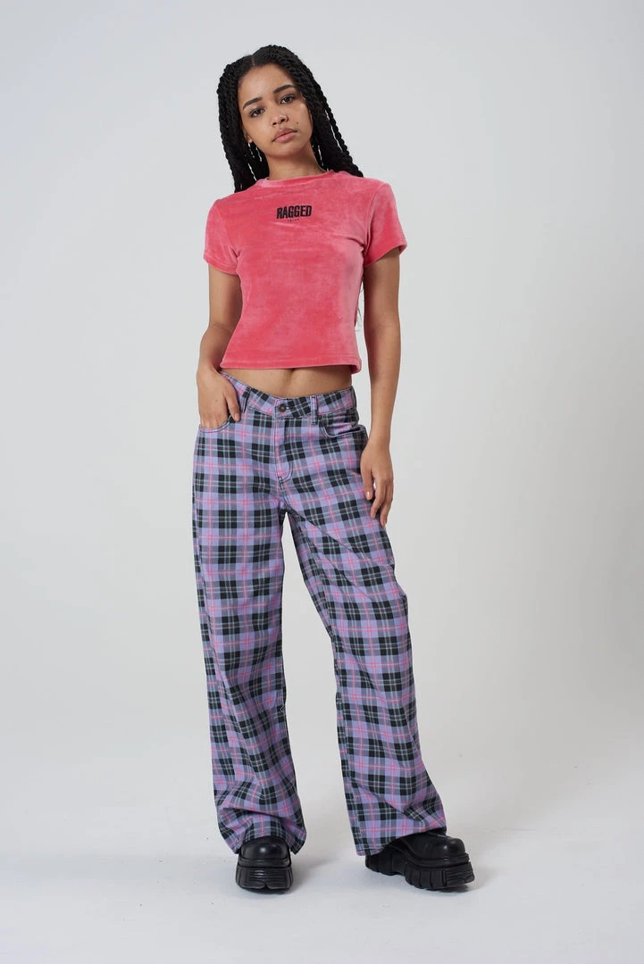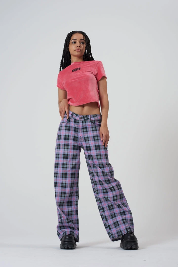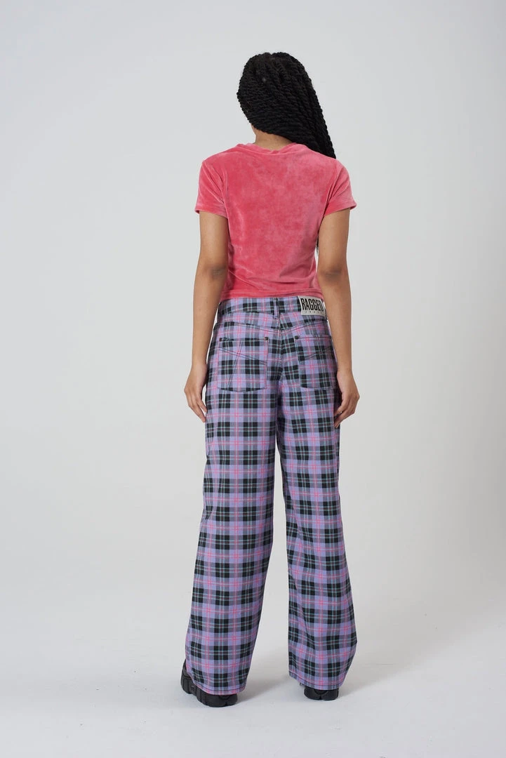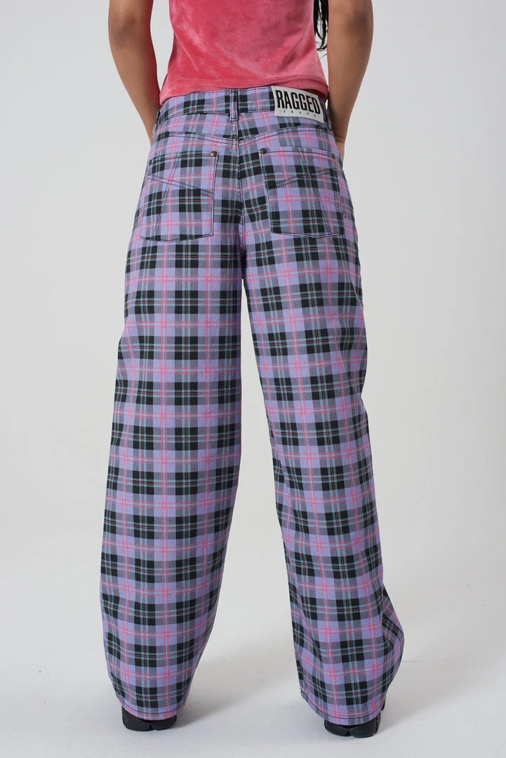 Ragged Jeans purple check print denim baggy low rise jean.