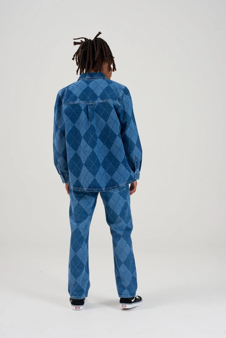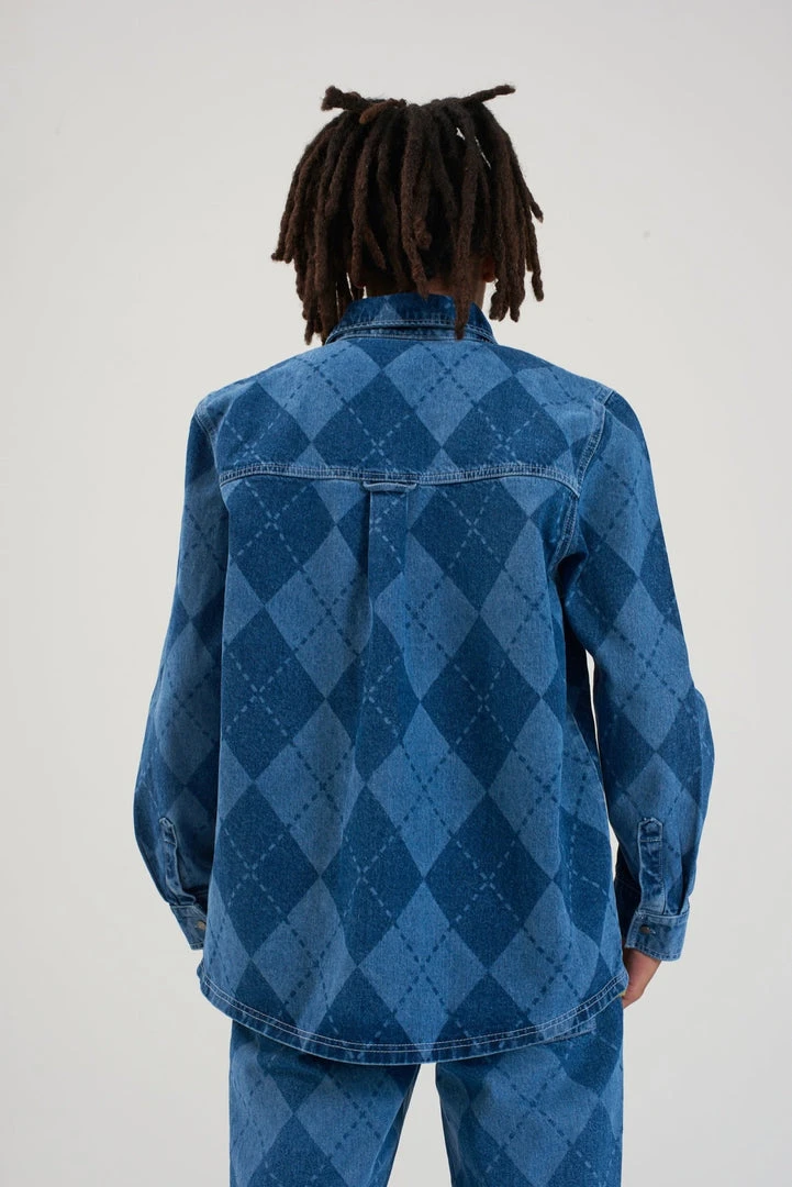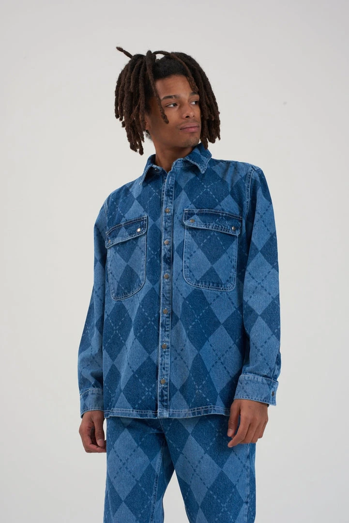 Ragged Jeans mens blue argyle denim shirt.