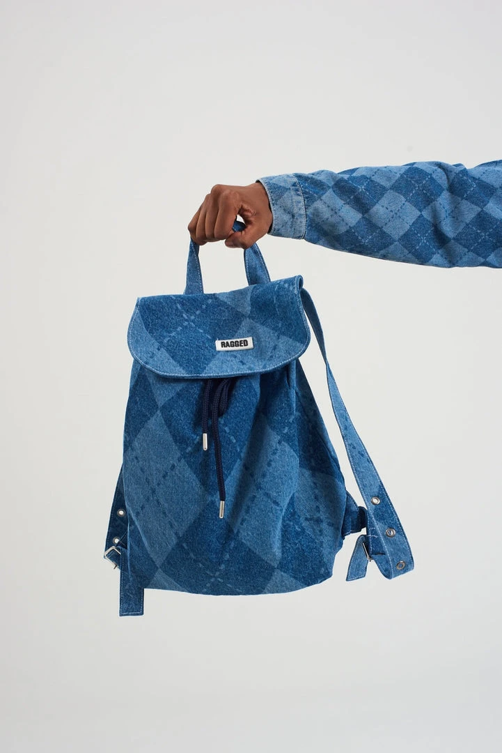 Ragged Jeans laser printed argyle blue denim rucksack.