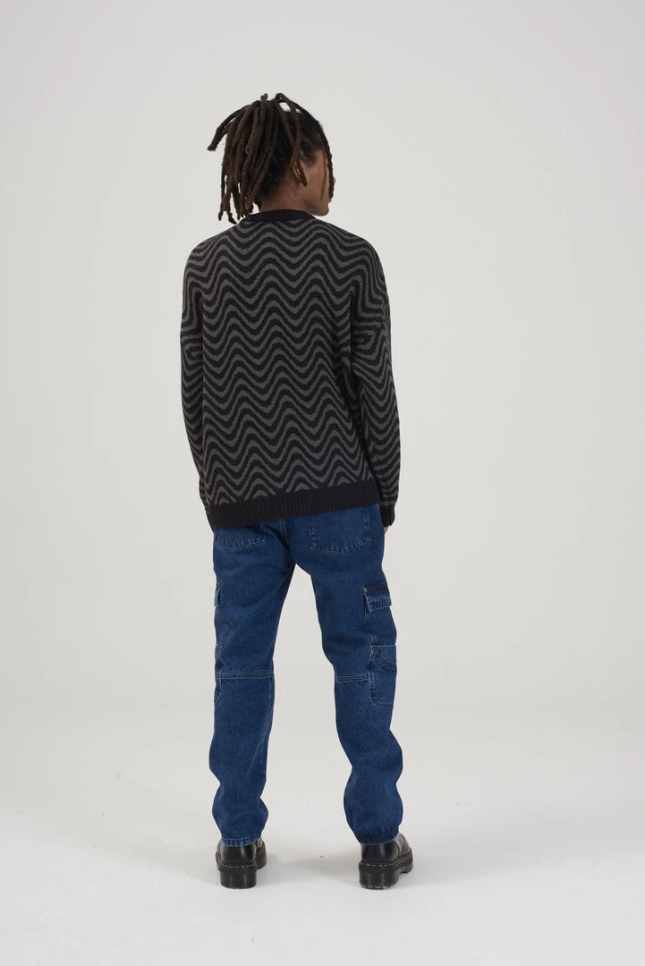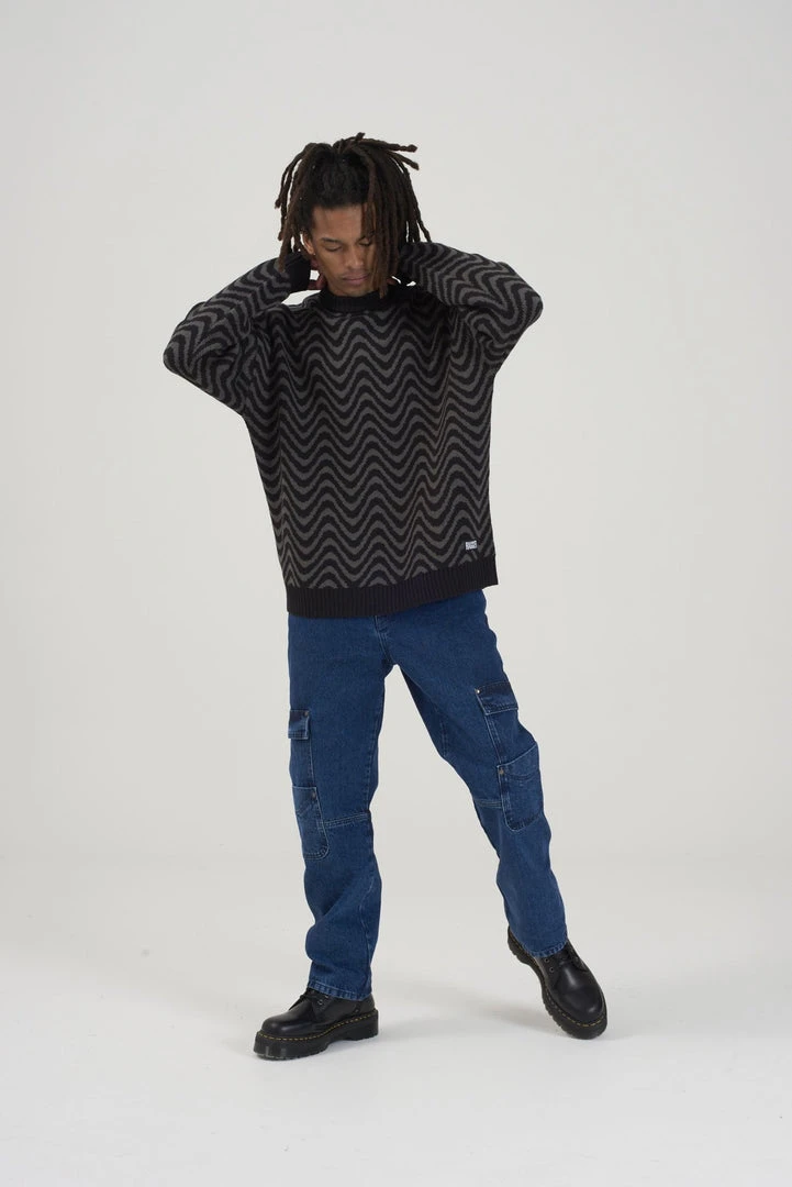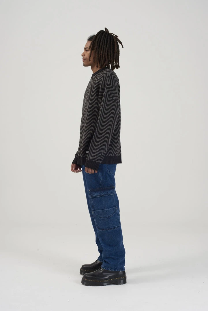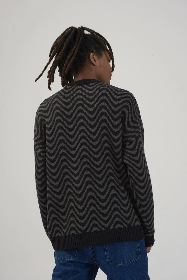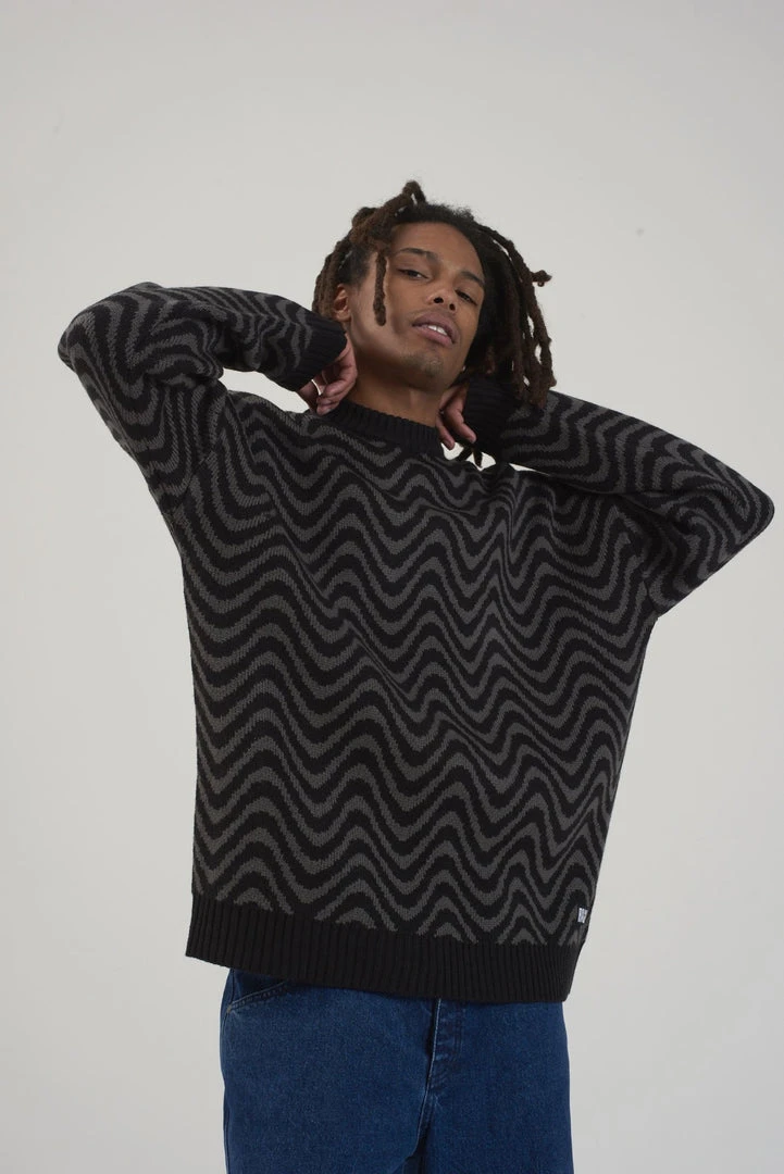 Ragged Jeans mens black & grey wave print knit jumper.