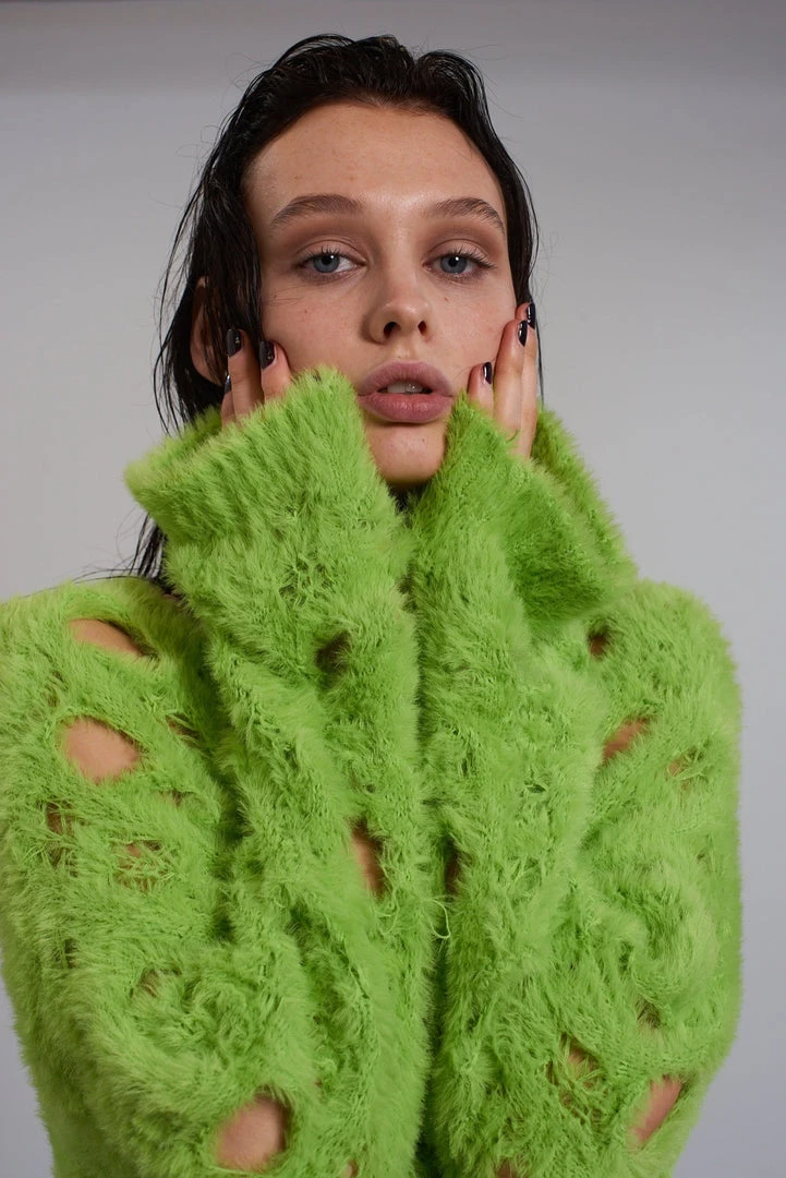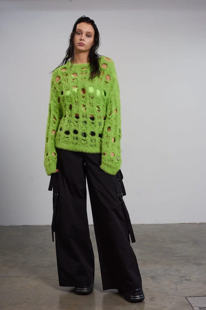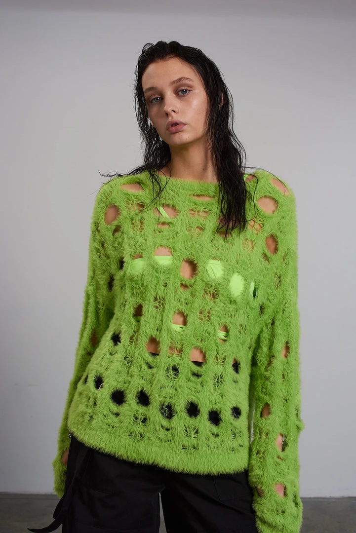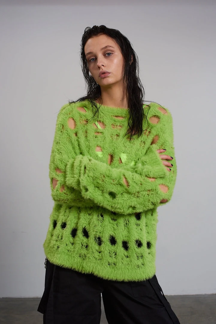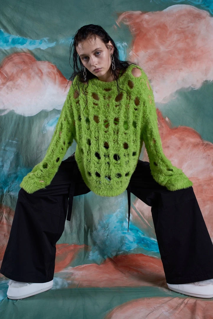 The Ragged Priest green holey knit long sleeve jumper.