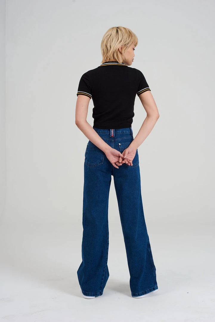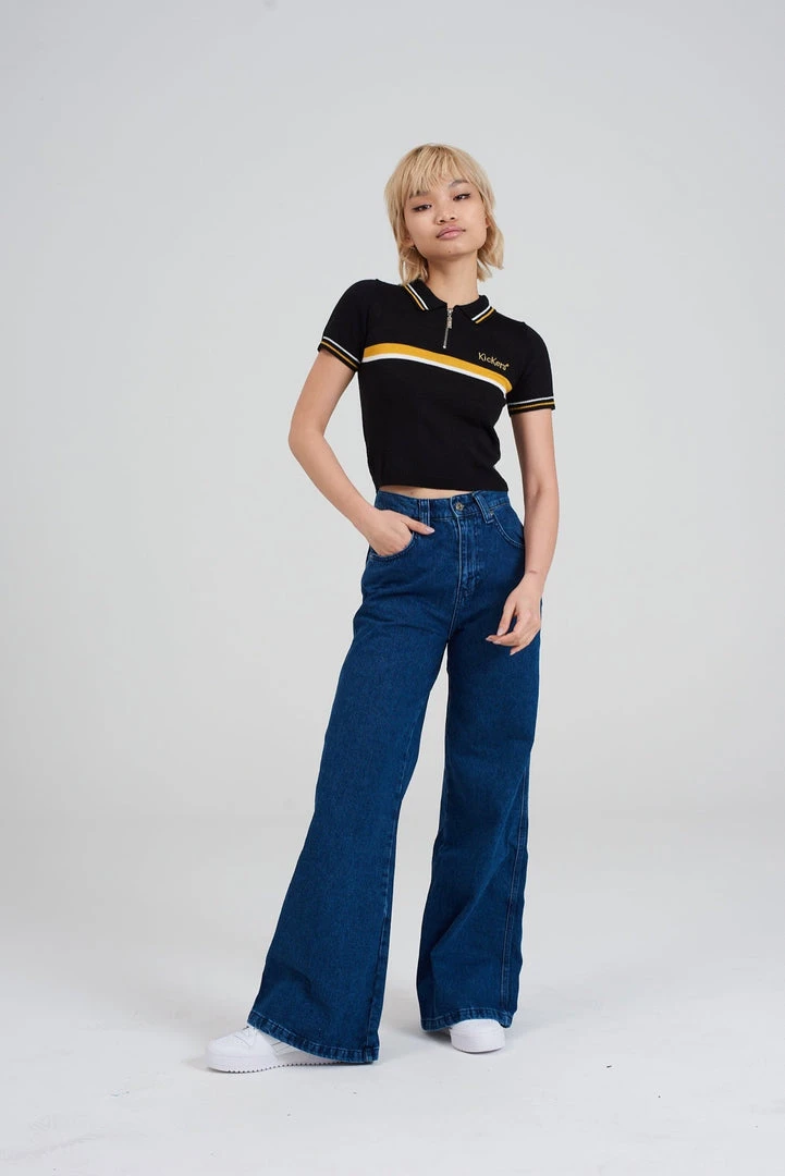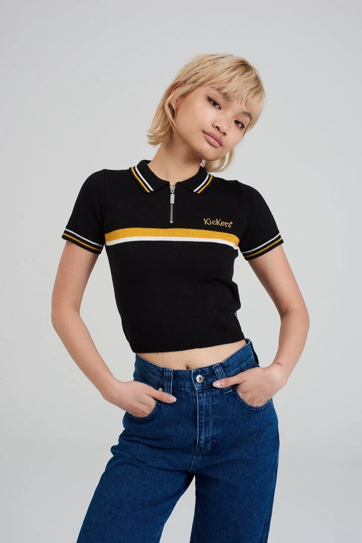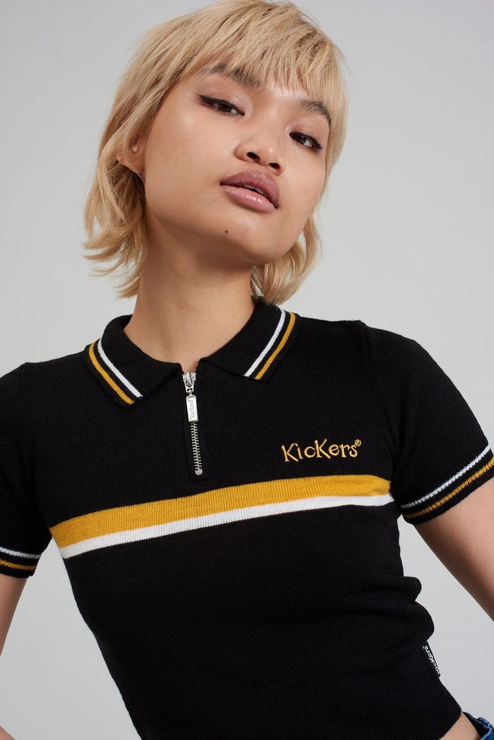 Kickers Classics black polo top with yellow chest stripe.