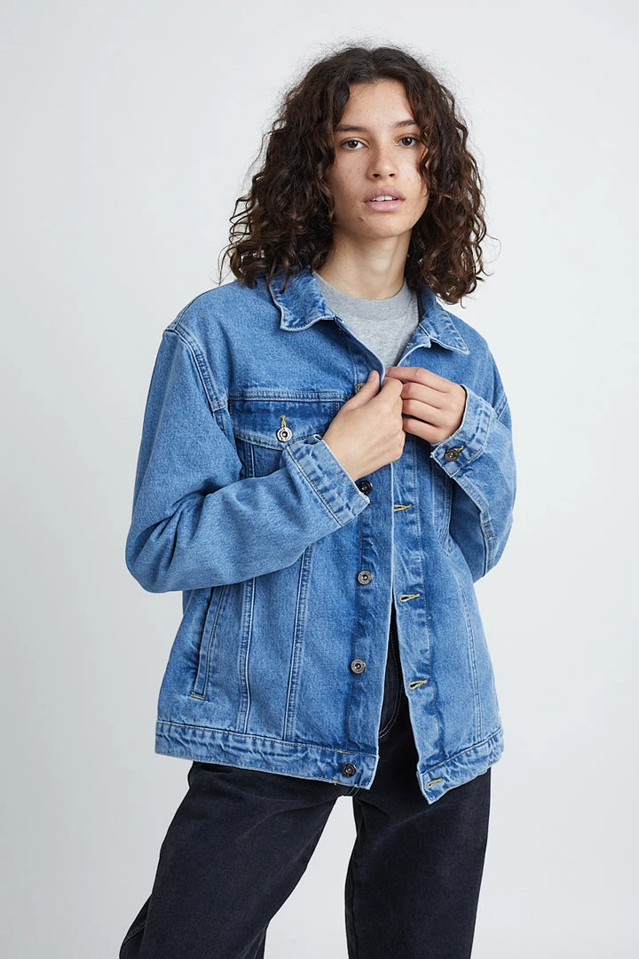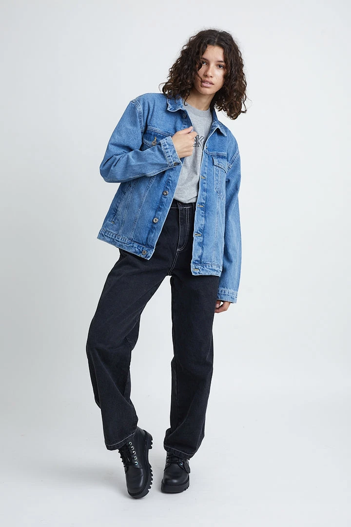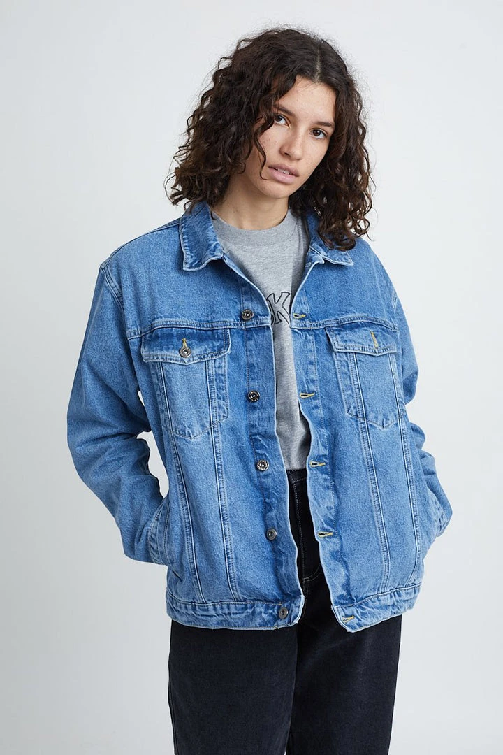 Kickers Classics mid-blue denim jacket with button up front and front pockets.