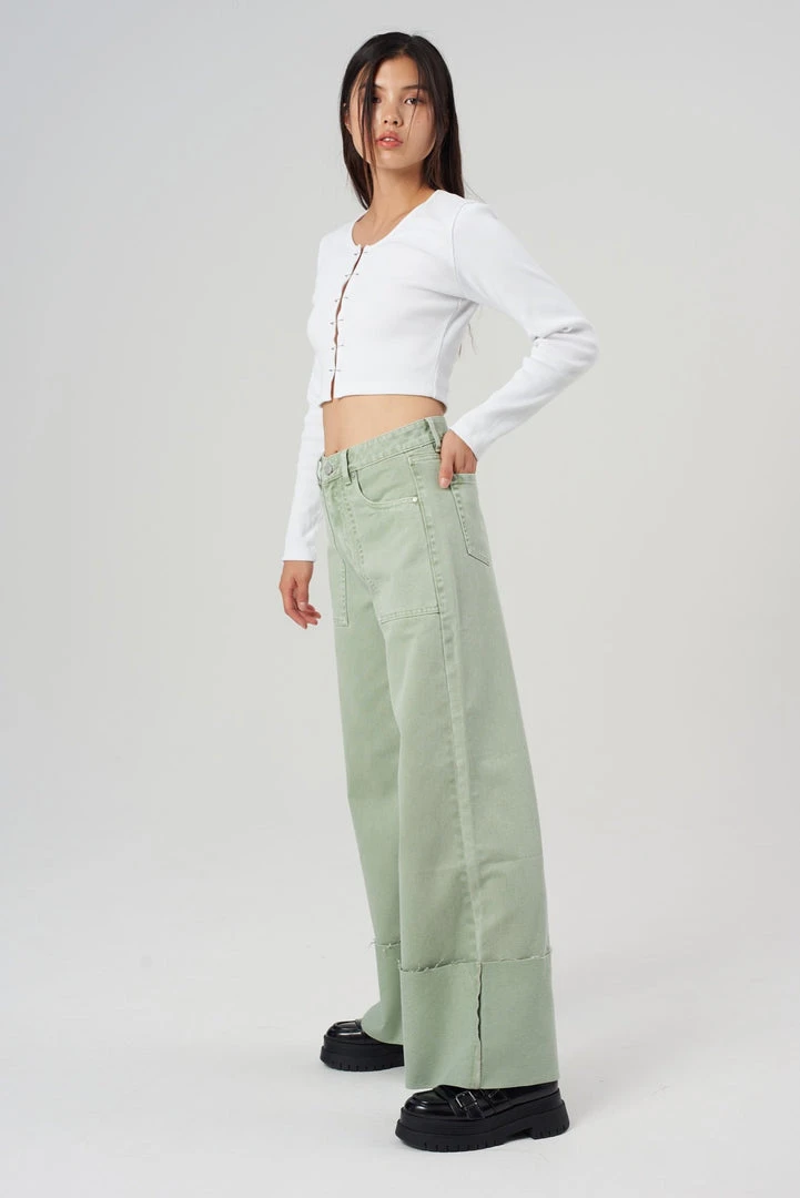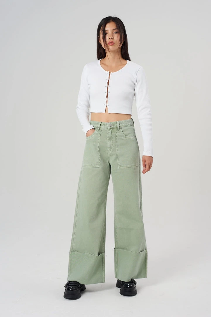 The Forbid Jeans are our khaki turn up jeans. Crafted from 50% recycled cotton.