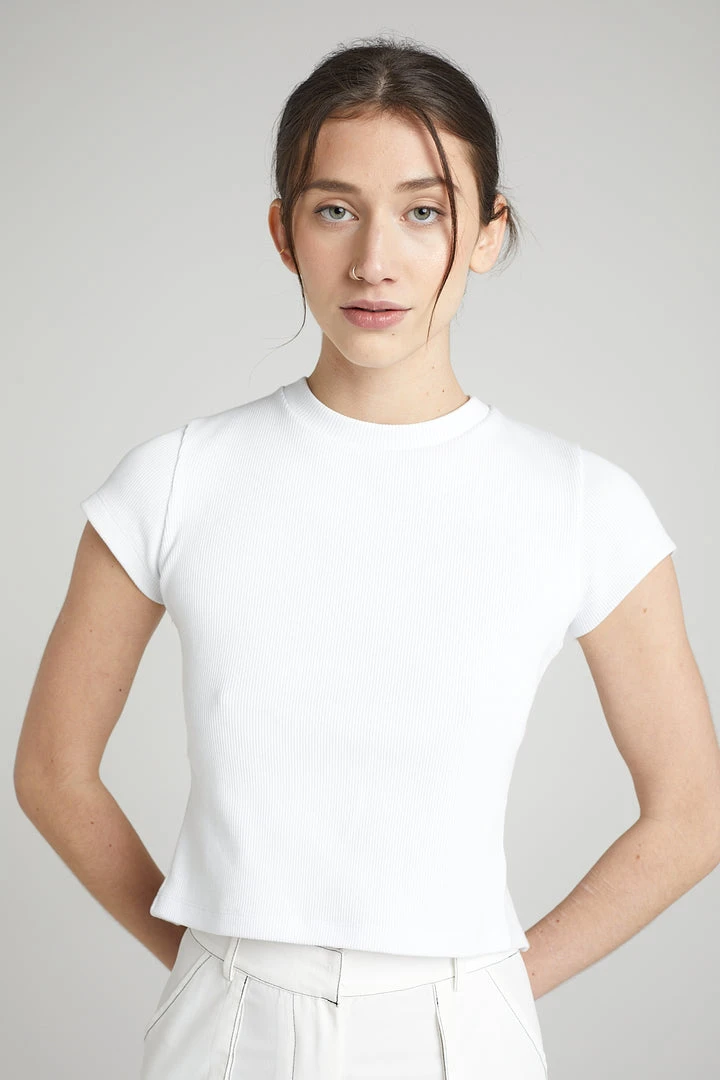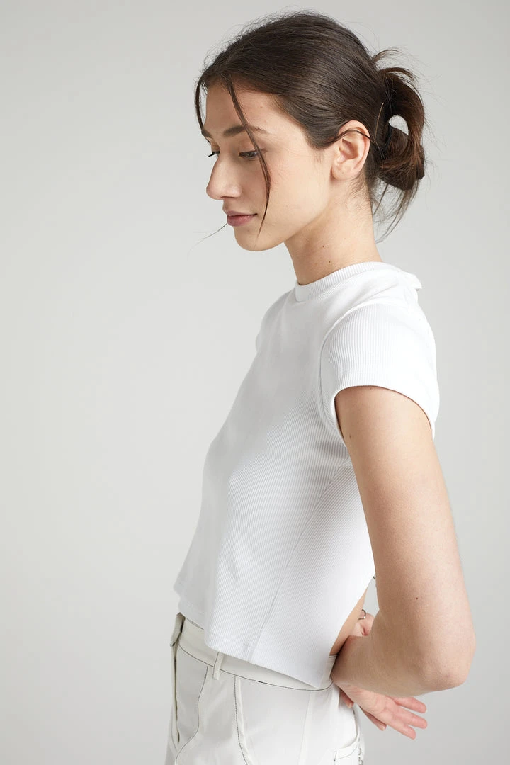 The Ragged Priest white ribbed ringer top with open back and lace up chain detail.